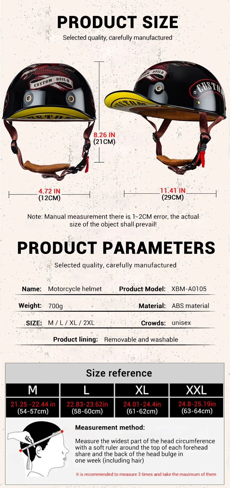 Product name: Retro Motorcycle Helmet, Half Face