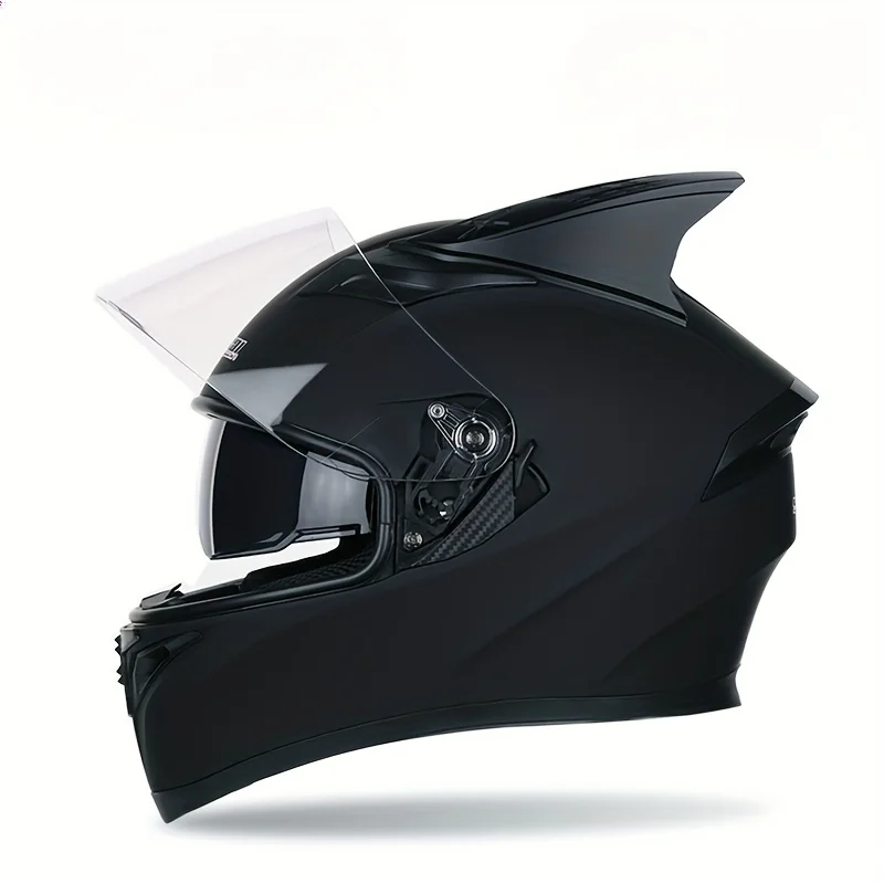 Motorcycle Helmet with Corner, Vintage Style, Full Coverage, Cool Safety Cap, ABS Material, Black, Wipeable with Wet Cloth