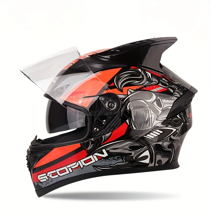 Motorcycle Helmet with Horns, Men’s Retro Full-Face Motorcycle Helmet, All-Covering Cool Safety Cap, Scorpio Design,