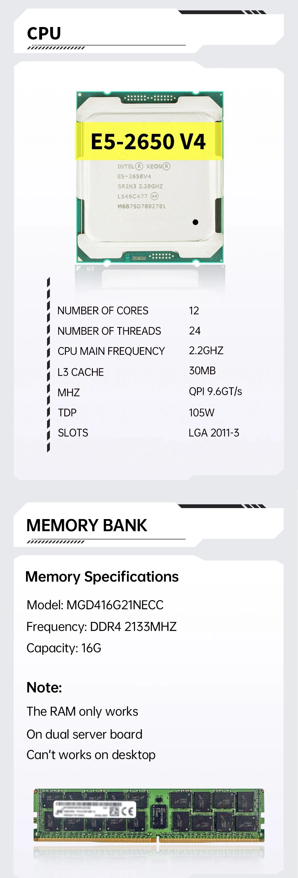 Motherboard+CPU: MG-X99 D4+E5 2650 V4 CPU