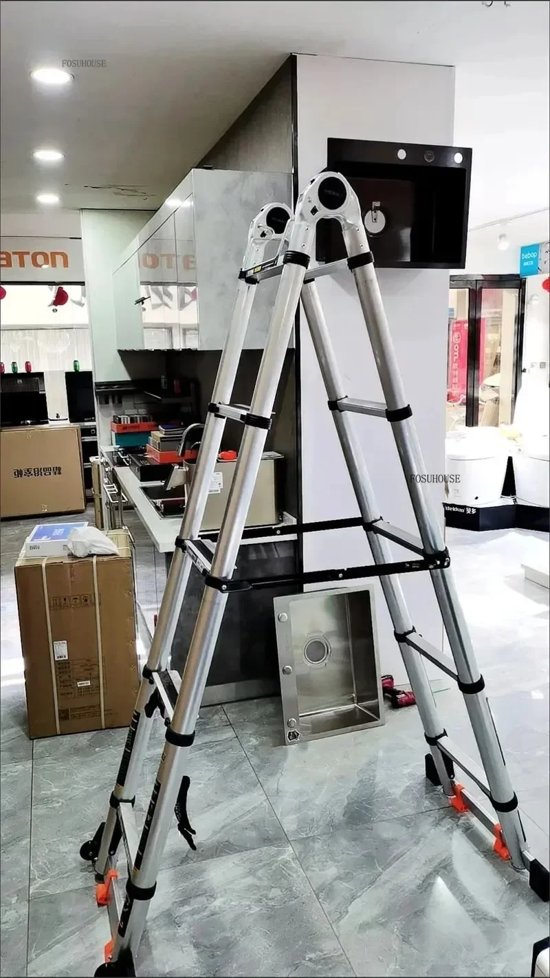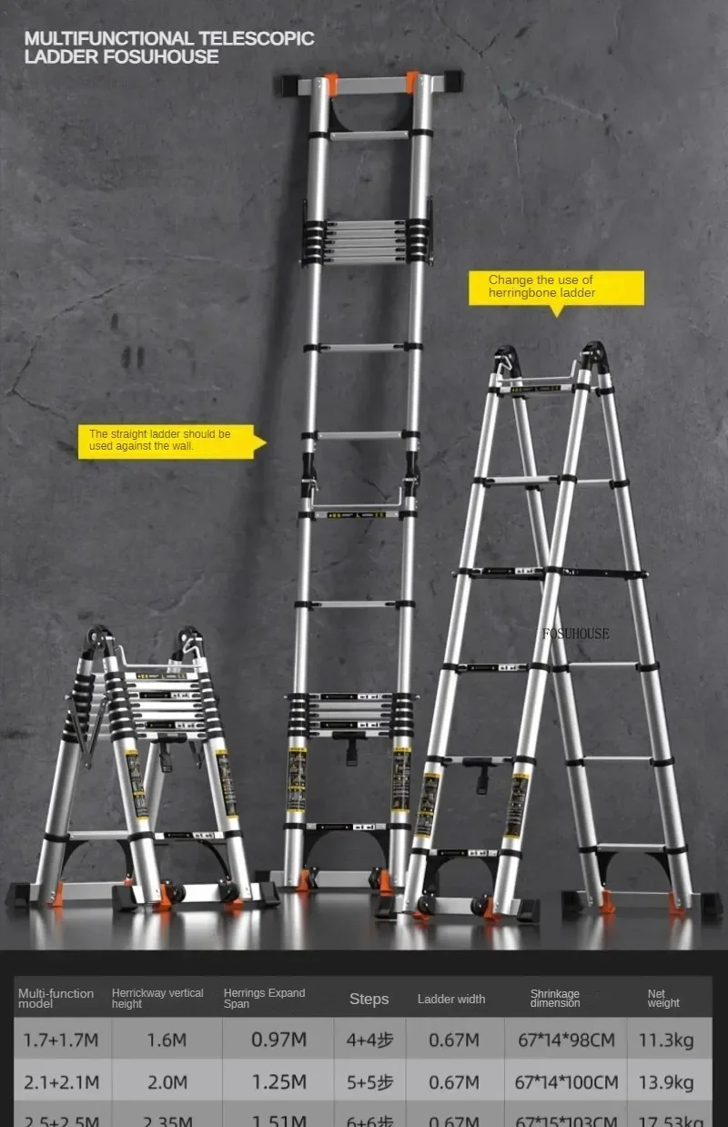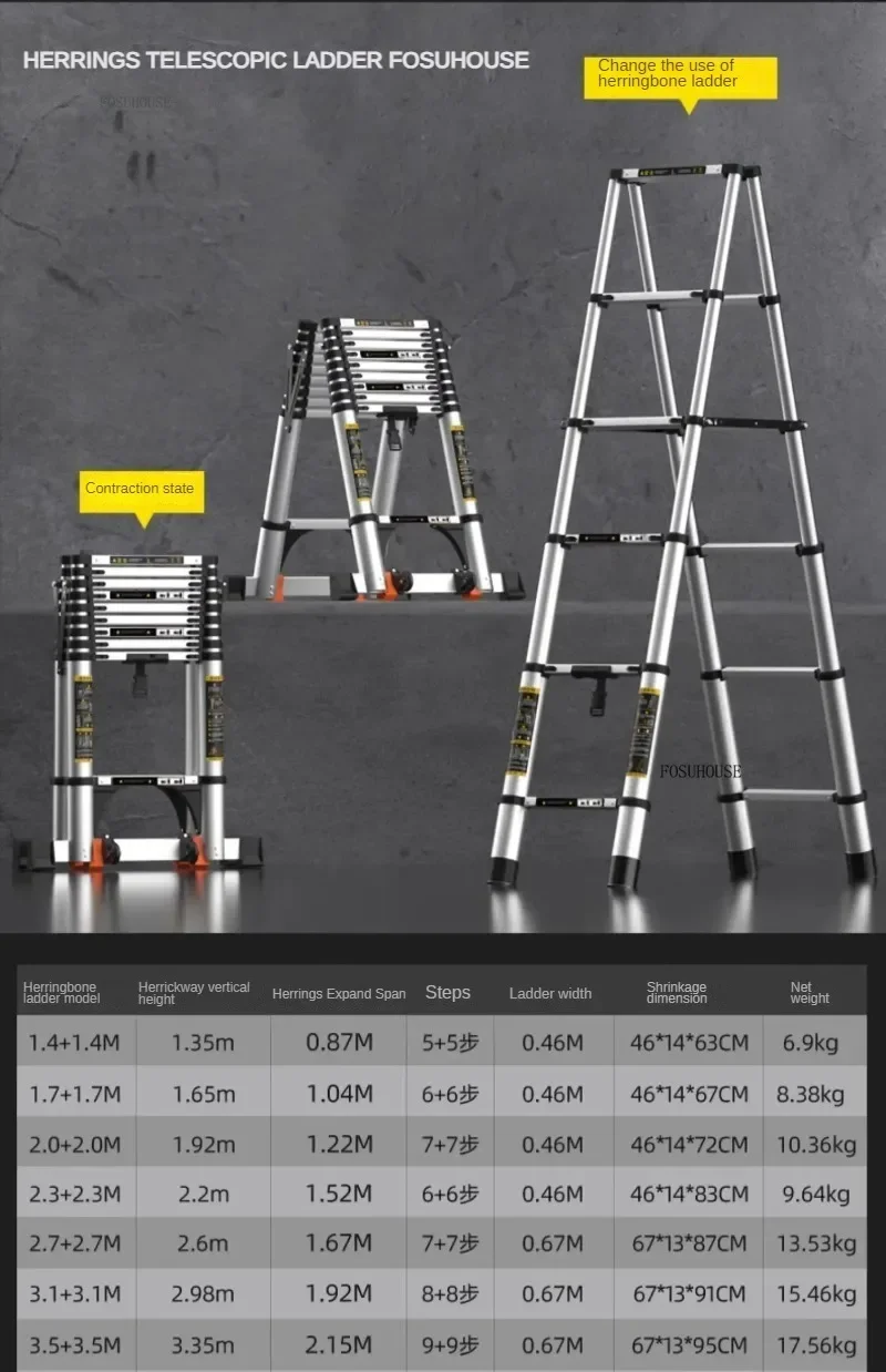 Multi-functional Telescopic Ladder Aluminum Alloy Step Stools Engineering Herringbone Ladder Portable Folding Straight Ladder E
