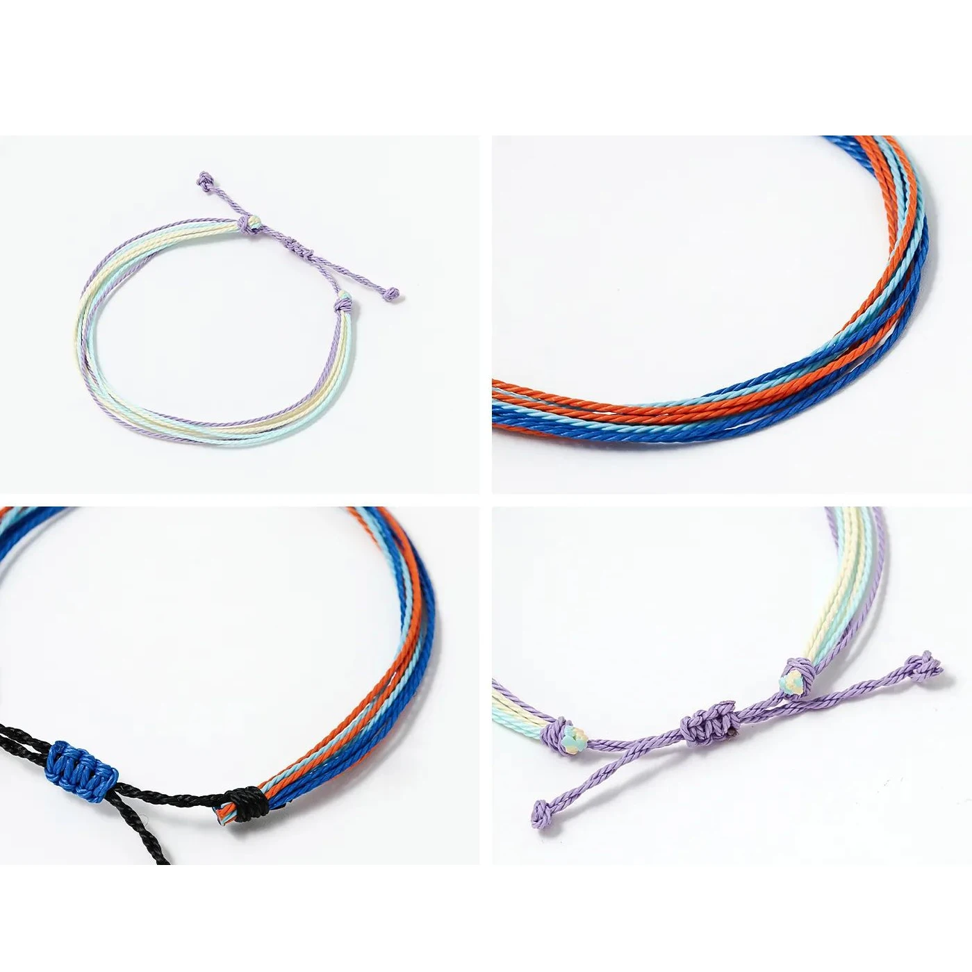 Multicolor Waterproof Waxed String Braided Bracelet&Anket Women New Fashion Multi-thread Handmade Summer Beach Surf Jewelry Gift