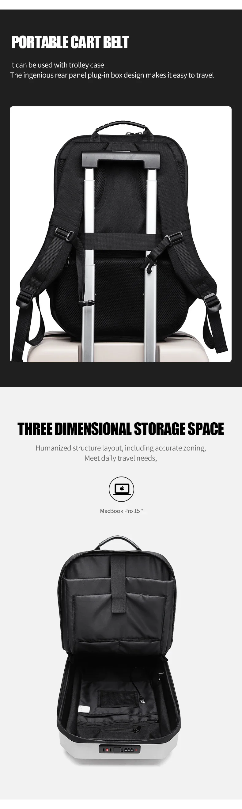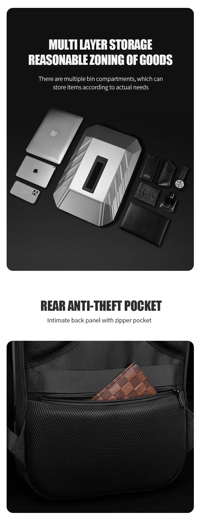 BANGE Travel Backpack For Men Fit 15.6 inch Laptop Backpack Multifunctional Anti Thief Backpack Waterproof Bags USB Charging