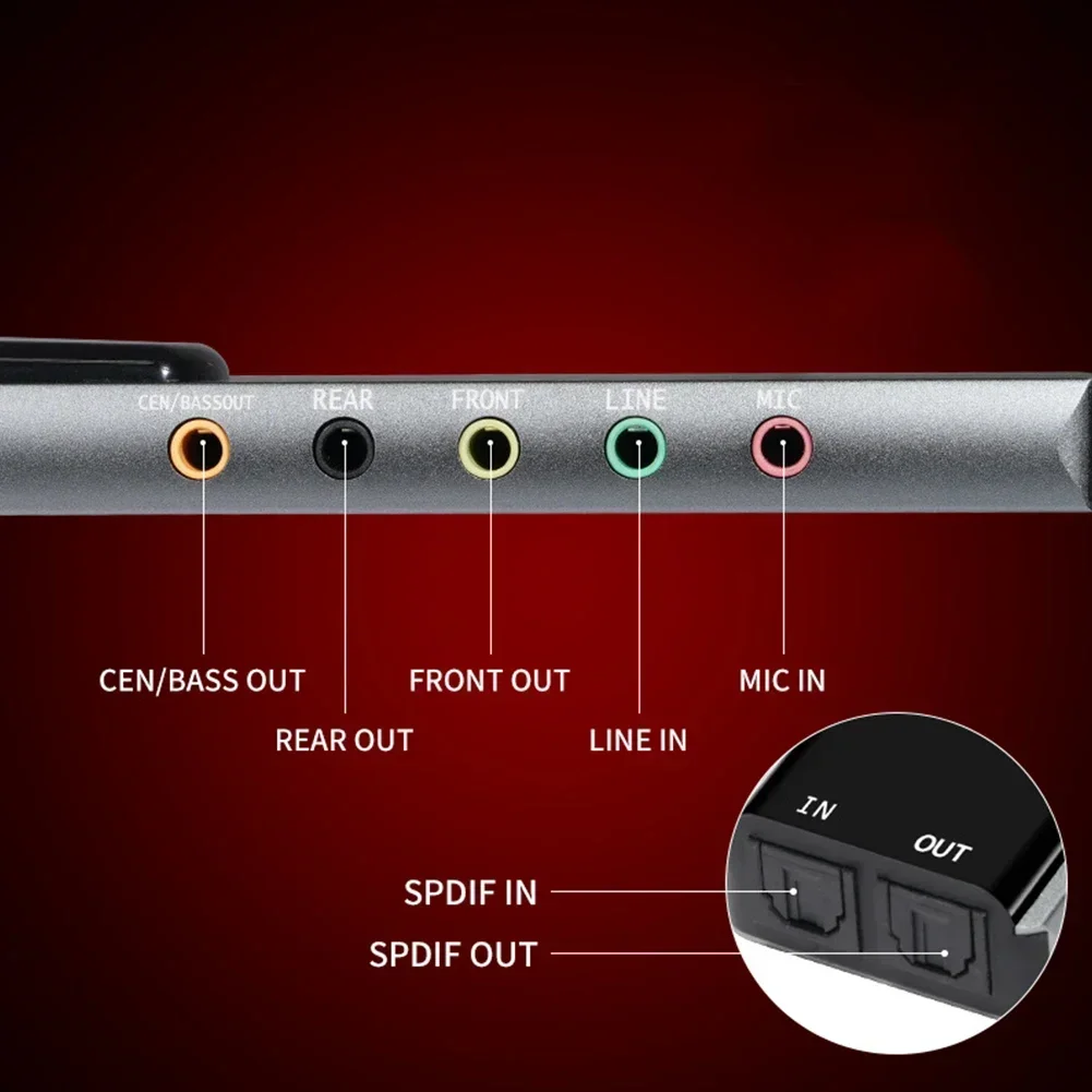 Multifunction External USB Audio Adapter USB Sound Card Aluminium Alloy 7.1 5.1 Channel SPDIF Optical for PC Computer