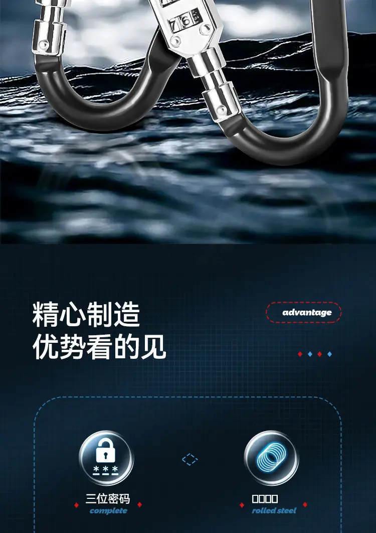 Multifunctional Code Lock Padlock Backpack Helmet Universal Key Chain Car Basket Buckle Pendant