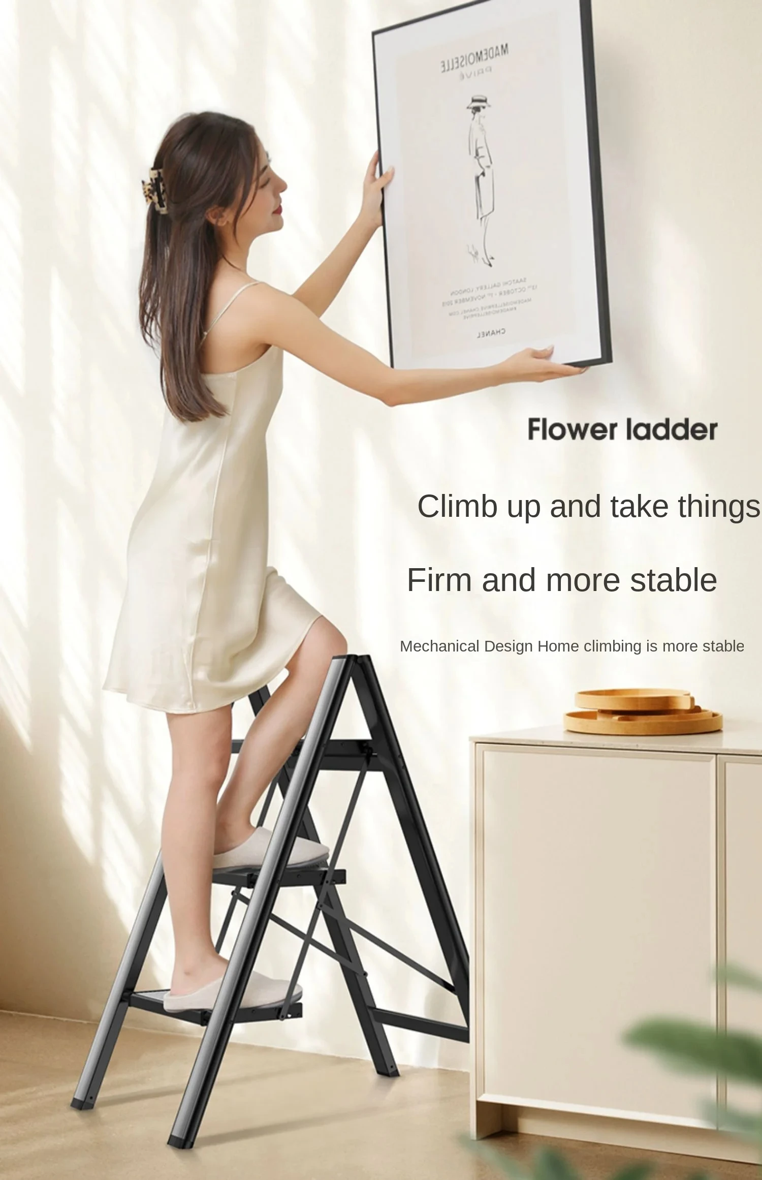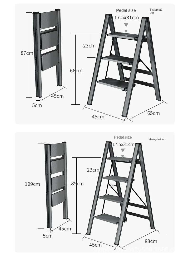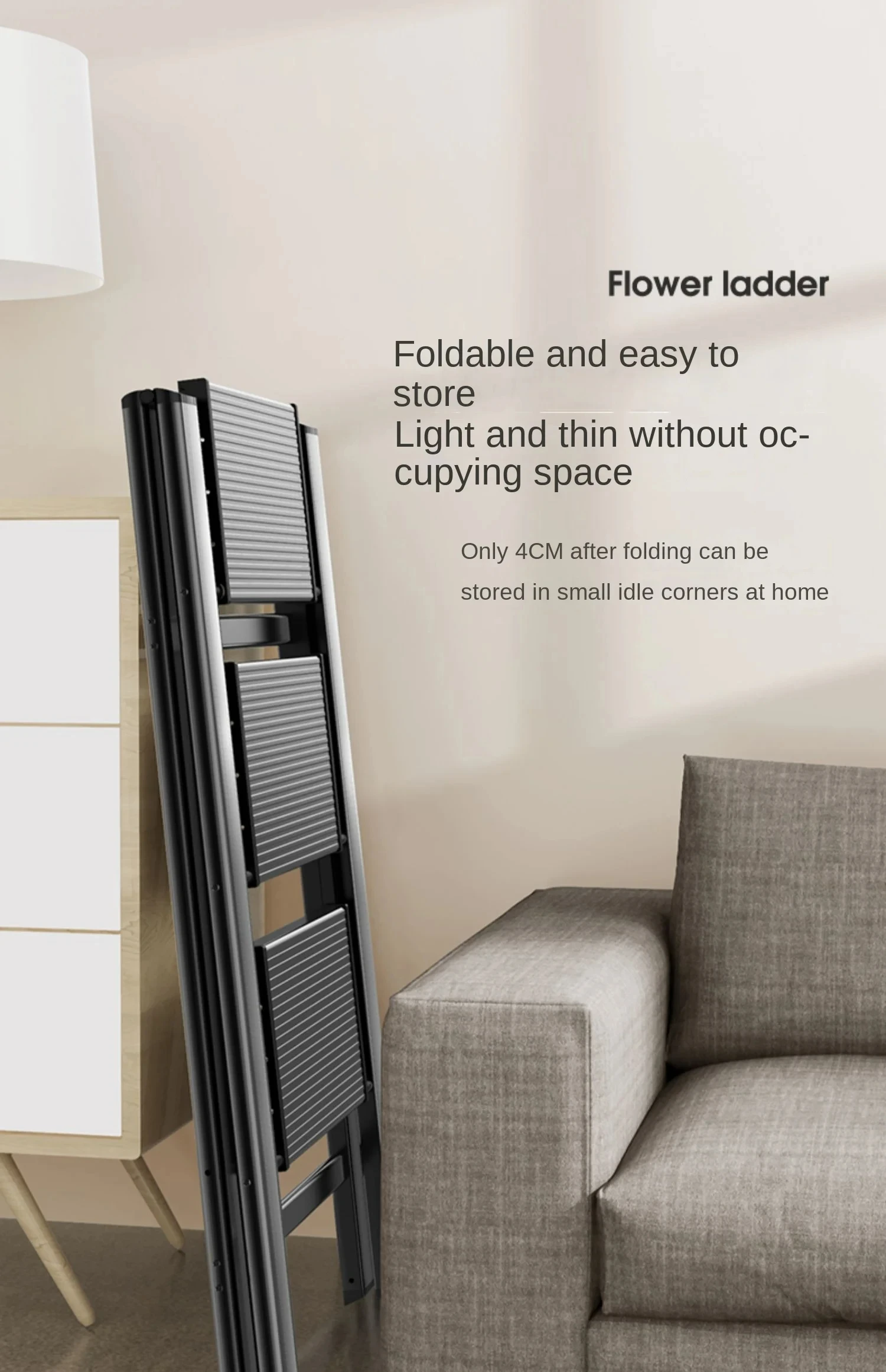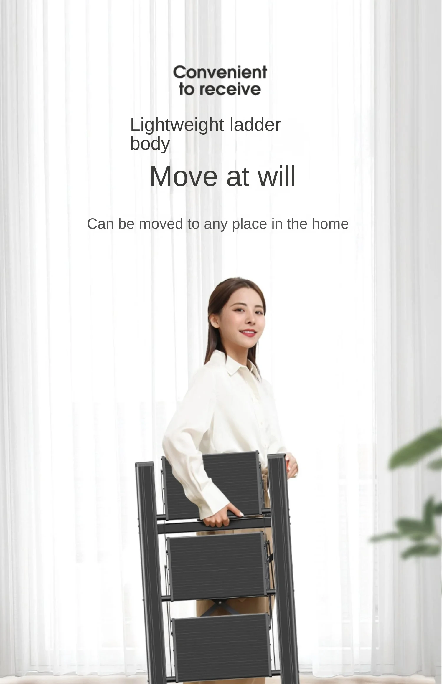 Multifunctional Folding Ladder Aluminum Alloy High Stools Kitchen Load-bearing 300kg Step Ladder Chair Widen 3 Step Ladder