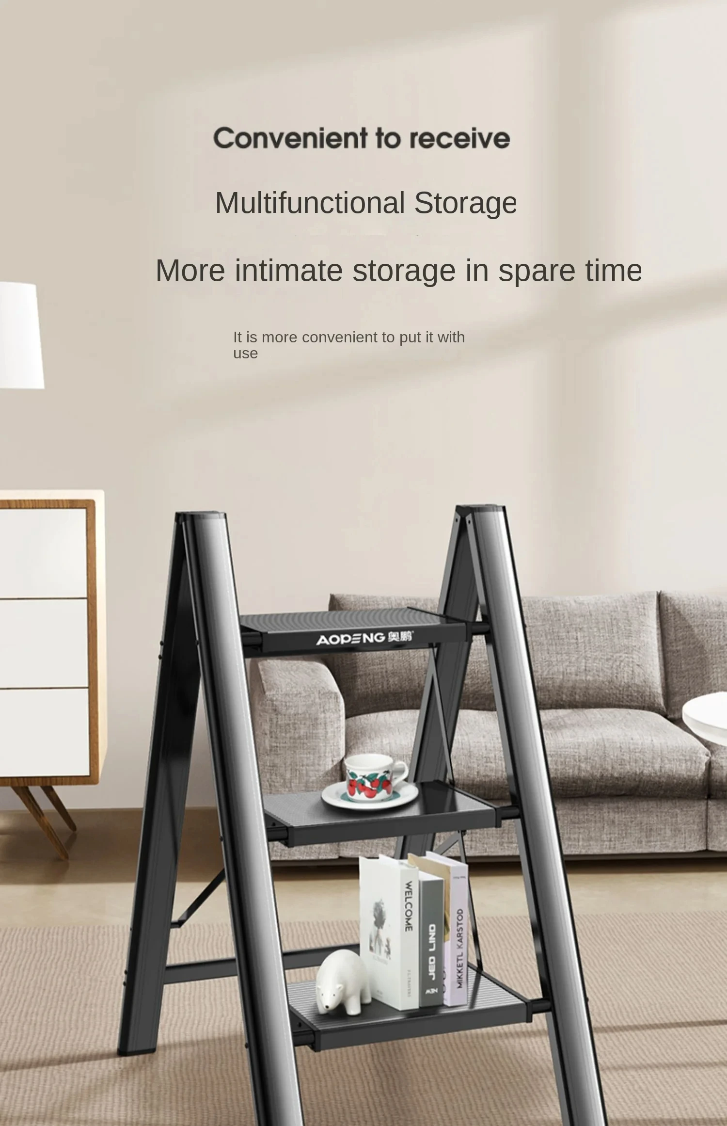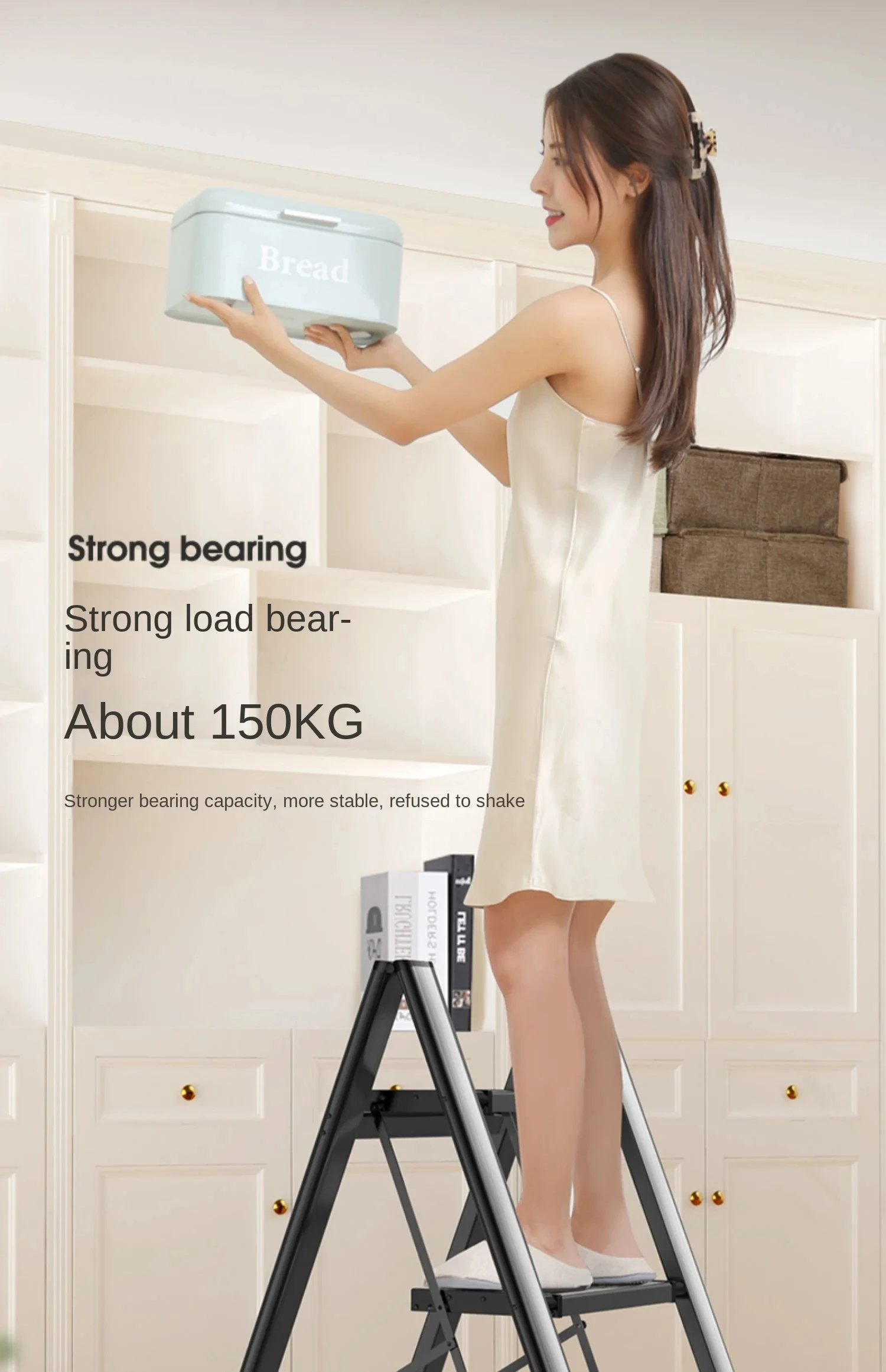 Multifunctional Folding Ladder Aluminum Alloy High Stools Kitchen Load-bearing 300kg Step Ladder Chair Widen 3 Step Ladder CX718