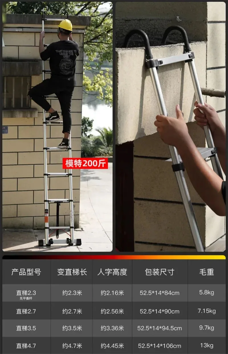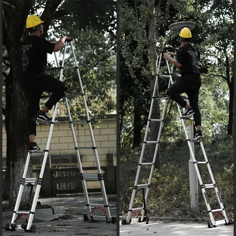 Multifunctional Lifting Step Ladders Home Herringbone Telescopic Ladder Aluminum Alloy Portable Engineering Folding Ladders A