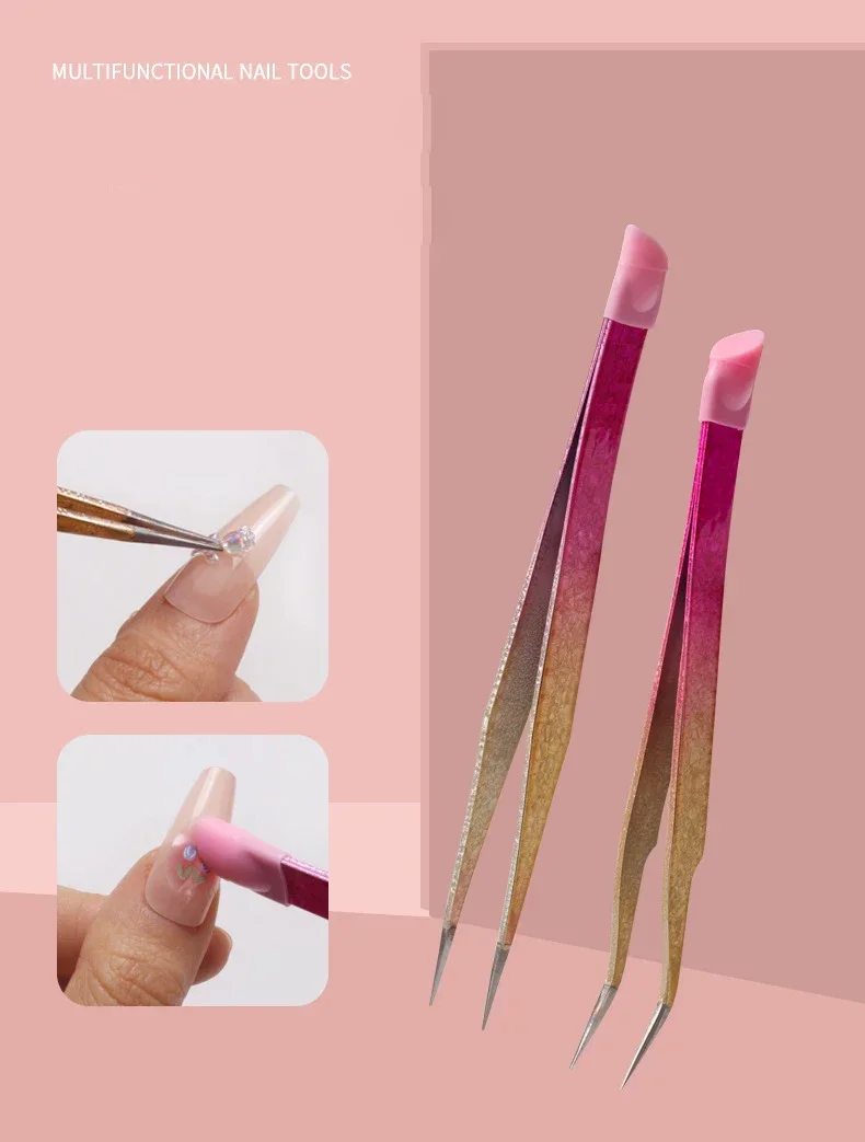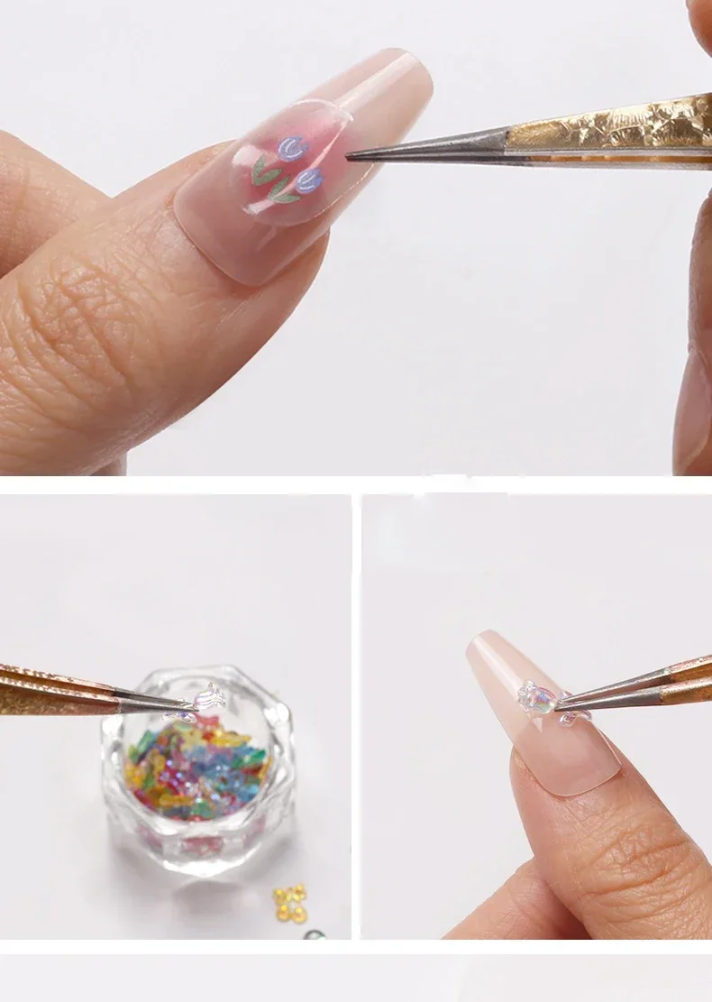 Nail Double-ended Diamond Pens Stainless Steel Nail Stickers Tweezers Nail Art Grafting Eyelashes Makeup Manicure Tools