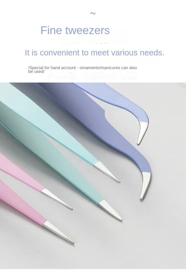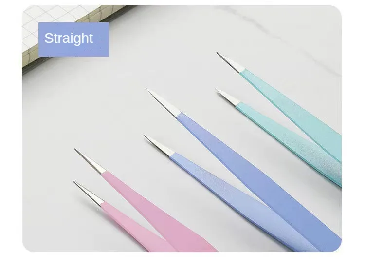 Nails Art Stainless Steel Curved Straight Tweezer Anti-static Precision 3D Sticker Rhinestones Nipper Picking Manicure Tools