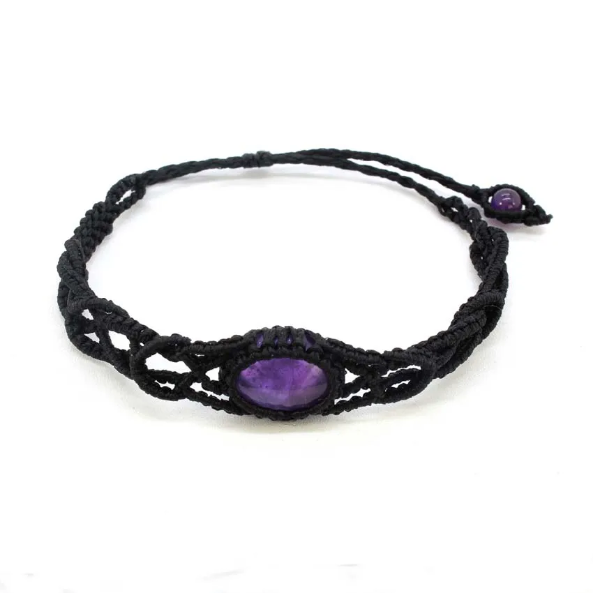 Natural Amethyst Crystal Quartz Agate Handmade Thread Rope Wrapped Braided Macrame Stone Bracelets Jewelry For Women Girls Gifts