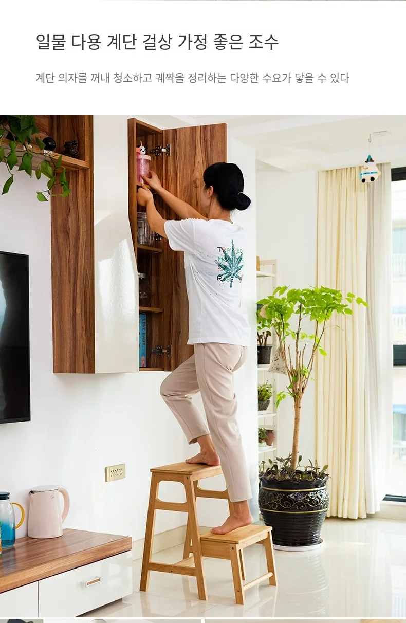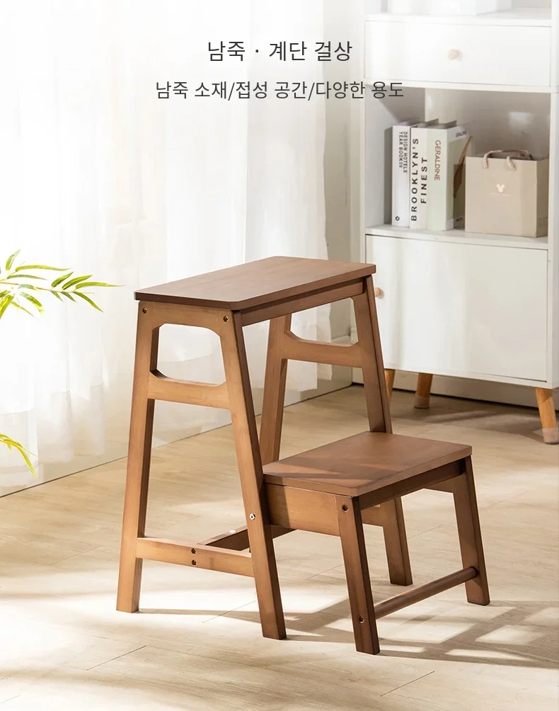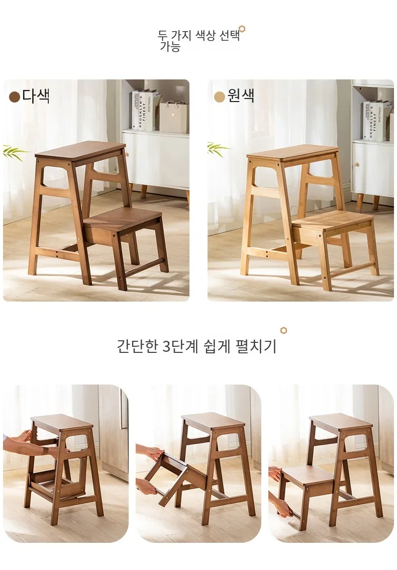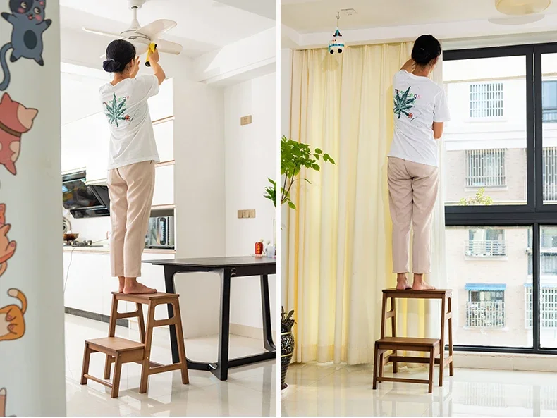 Japanese-Style Folding Ladder Stool, Multi-Functional Heavy-Duty Aluminum Step Ladder with Wooden Texture, Space-Saving Stool