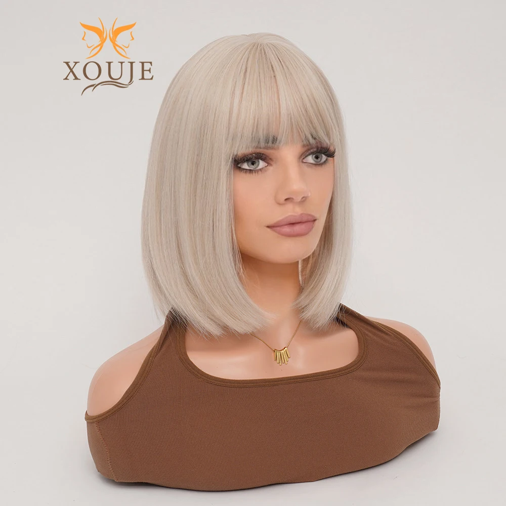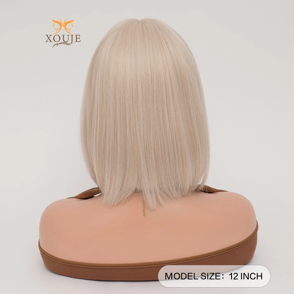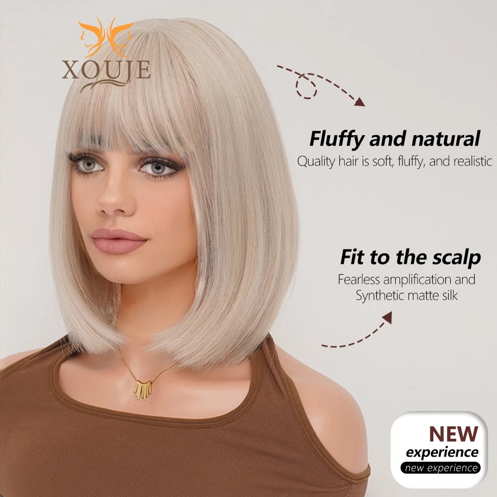 Natural Sexy Blonde Short Hair Bob Wig Striat Girls 12 Inch Bangs Natural Hair Heat Resistant Chemical Fiber Wig Suitable for Da