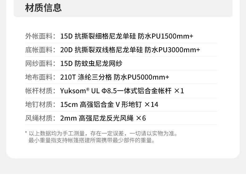 Bottom Tent Fabric:20D Nylon Monosilicon