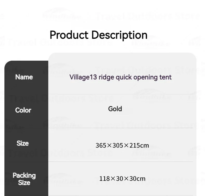 Name: Village Poof 13 Ridge Quick Opening Tent