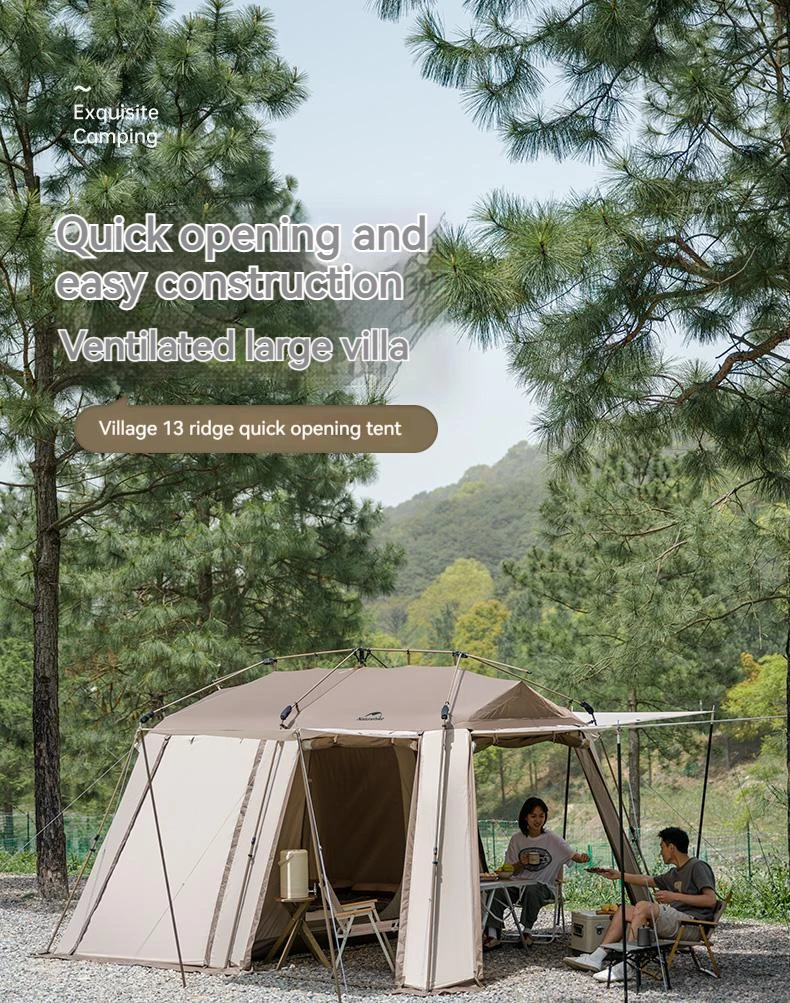 Naturehike Village 13 Automatic Tent Cabin Outdoor Tent A Frame House 4 People Family Car Camping With Snow Skirt Large Space