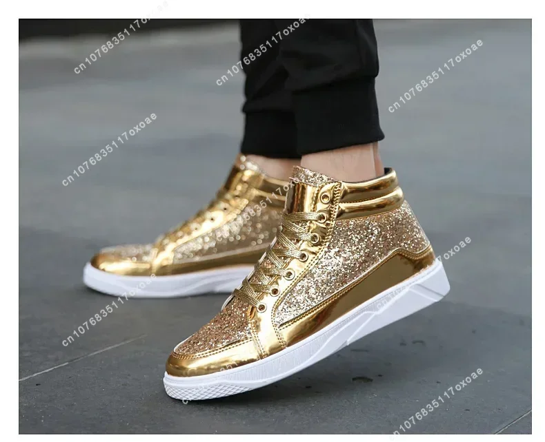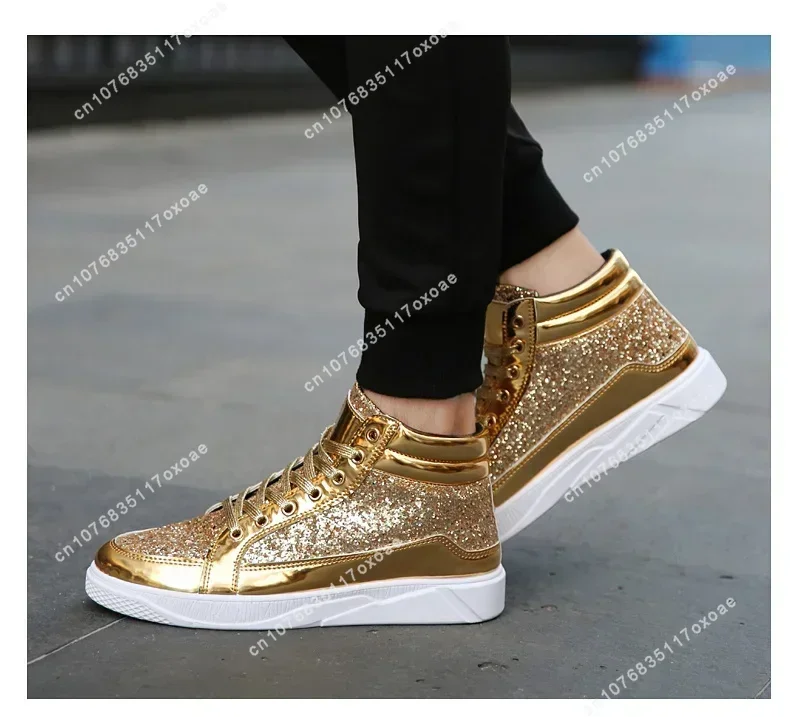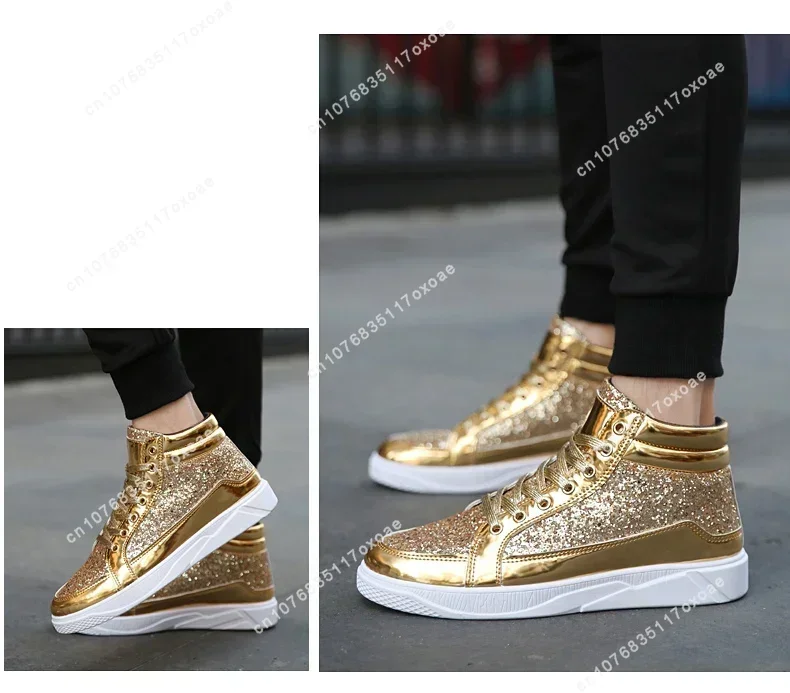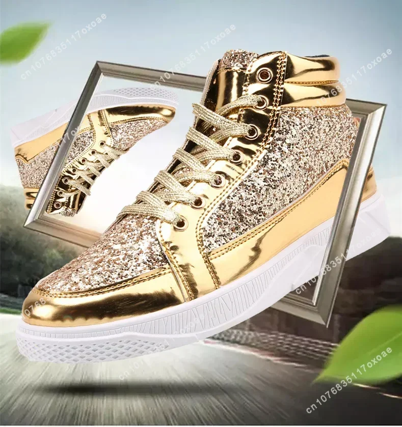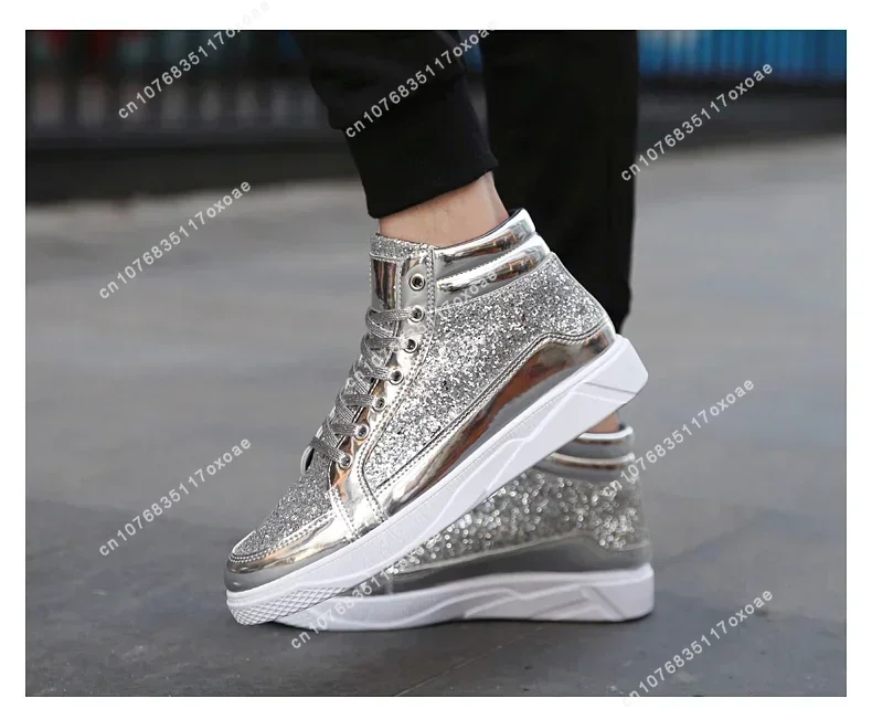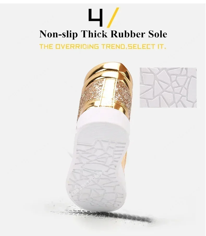 Shoes Type : basic Fit : Fits true to size, take your normal size Pattern Type : Solid Insole Material : EVA Season : Spring/Autumn Model Number : 39-46 Lining Material : Cotton Fabric Outsole Material : RUBBER Closure Type : Lace-up Feature : Breathable,Height Increasing,Massage,Hard-Wearing,Anti-Odor Upper Material : Sequined Cloth Origin : Mainland China Item Type : Casual Shoes Department Name : ADULT Colors : Golden Black Silver platform sneakers : mens sneakers men shoes sneakers : zapatillas hombre zapatillas de hombre : zapatillas hombre casual chaussure homme : sneakers homme scarpe uomo : sneakers for men mens shoes casual : casual sneaker glitter shoes : mirrors shoes