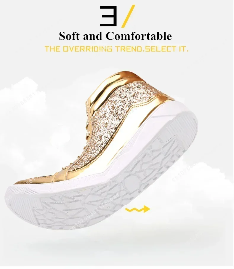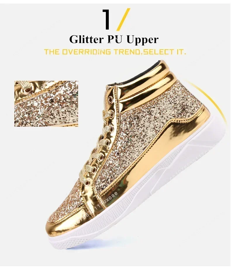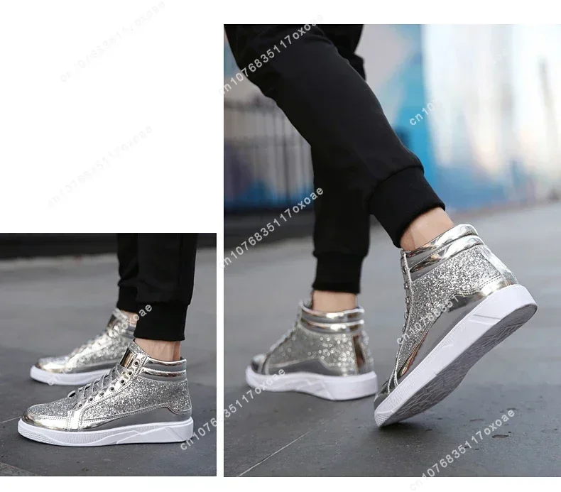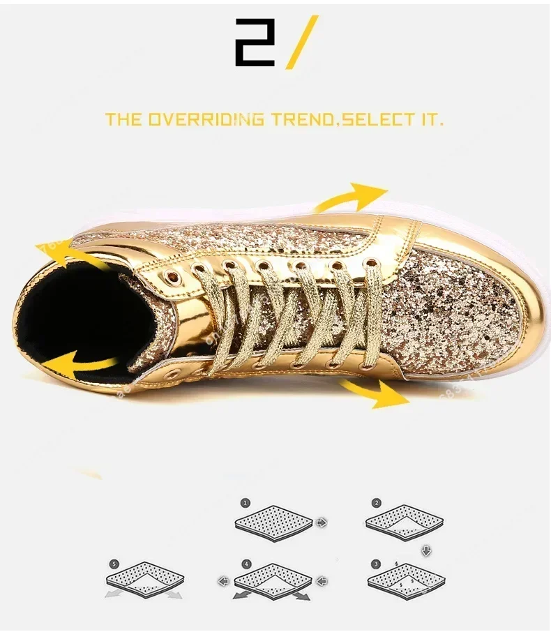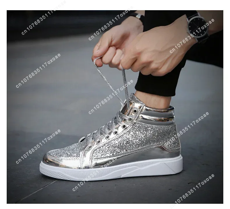 Shoes Type : basic Fit : Fits true to size, take your normal size Pattern Type : Solid Insole Material : EVA Season : Spring/Autumn Model Number : 39-46 Lining Material : Cotton Fabric Outsole Material : RUBBER Closure Type : Lace-up Feature : Breathable,Height Increasing,Massage,Hard-Wearing,Anti-Odor Upper Material : Sequined Cloth Origin : Mainland China Item Type : Casual Shoes Department Name : ADULT Colors : Golden Black Silver platform sneakers : mens sneakers men shoes sneakers : zapatillas hombre zapatillas de hombre : zapatillas hombre casual chaussure homme : sneakers homme scarpe uomo : sneakers for men mens shoes casual : casual sneaker glitter shoes : mirrors shoes