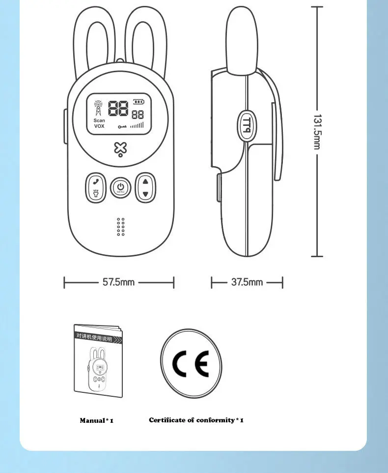 Gift your kid, niece or nephew the walkie talkies! Besides built-in LED flashlight, intuitive LCD display, VOX function and volume control, this set is also equipped with the CTCSS system to help protect your children from outside interference.