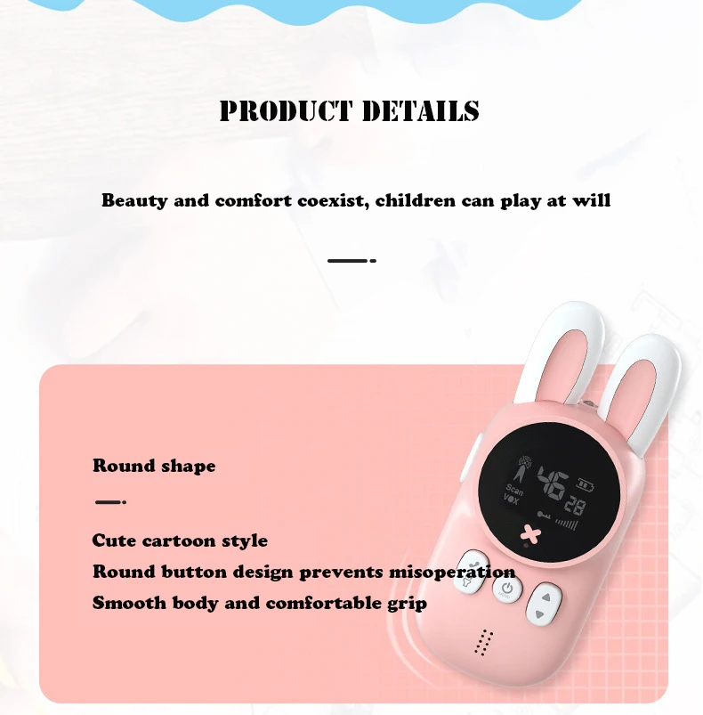 New 2PCS Rabbit Walkie Talkie 3KM Range Handheld Transceiver UHF Radio Lanyard Children Birthday Gift Mini Kids Toys Interphone