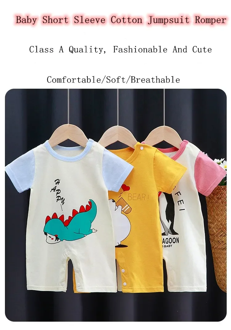 New Baby Clothes Baby Boy And Girl Pure Cotton Soft And Comfortable Cute Cartoon Short-Sleeved One-Piece Romper Newborn Gift