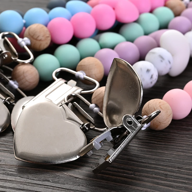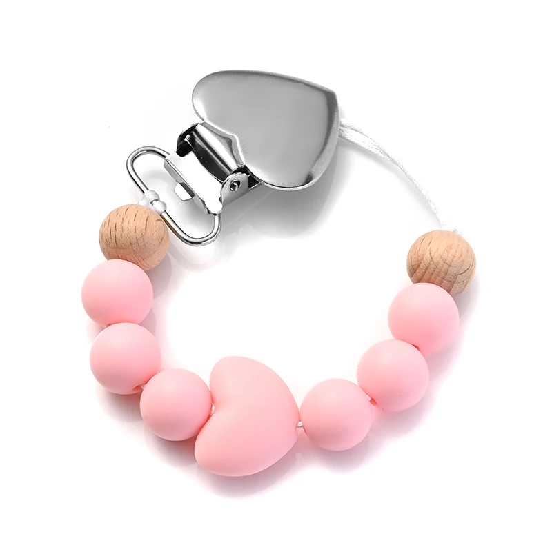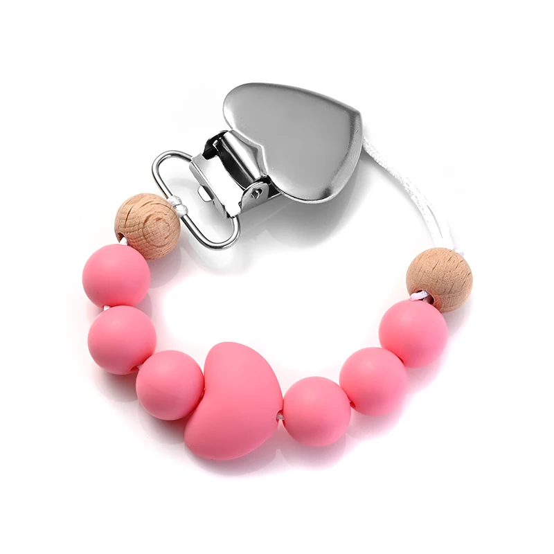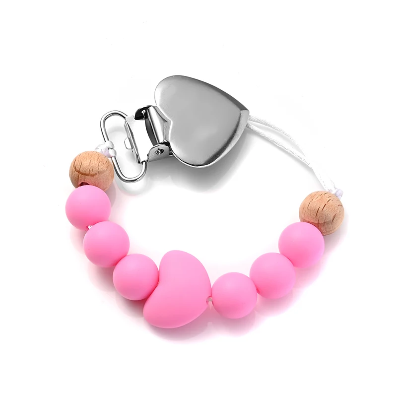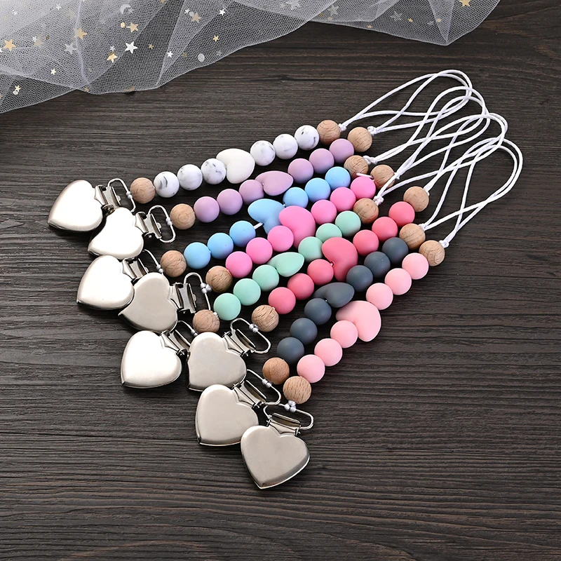 New Baby Heart Metal Nipple Clips Silicone Round Teether Beads Pacifier Chain For Baby Teething Nursing Safe Chew Toys BPA Free