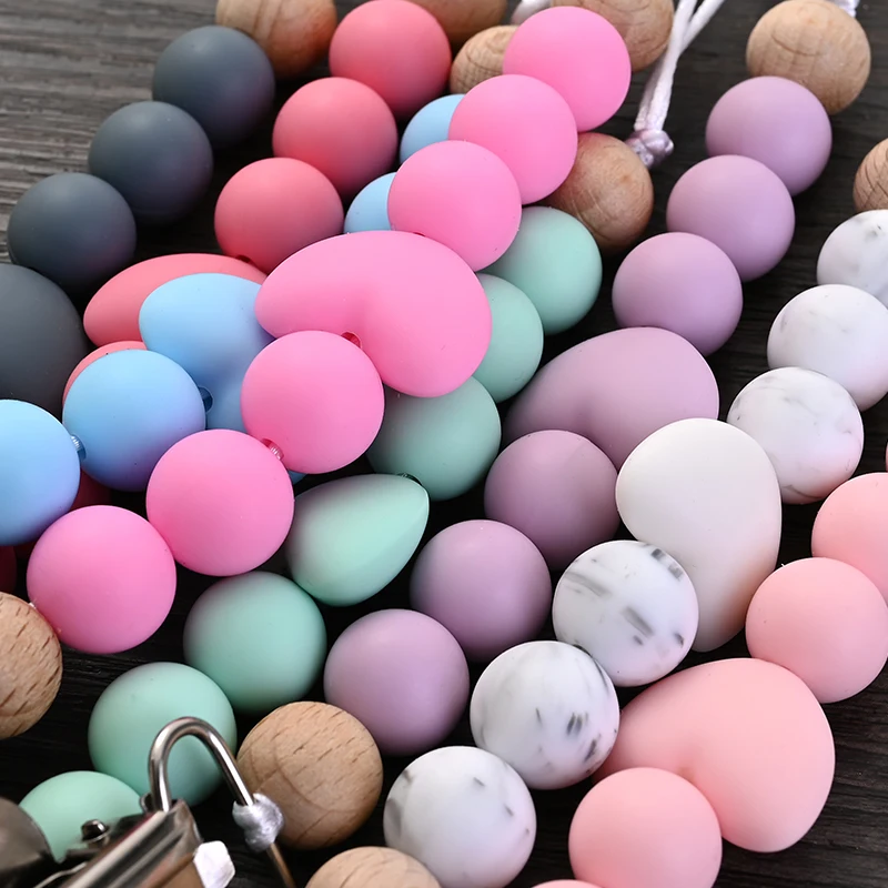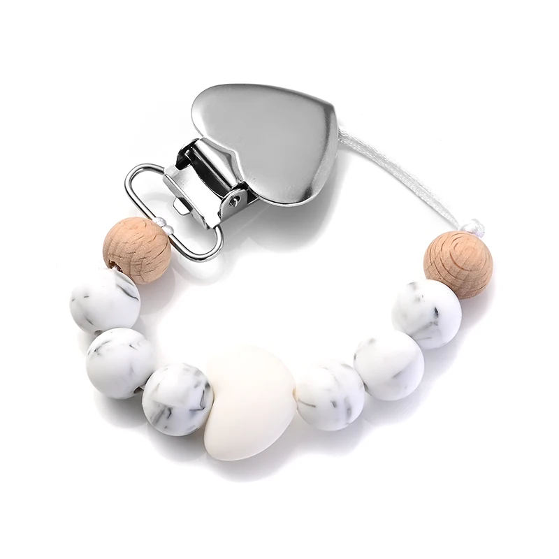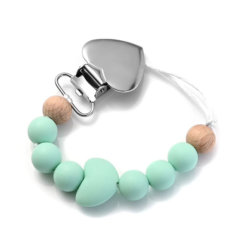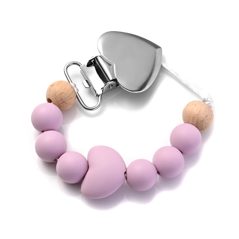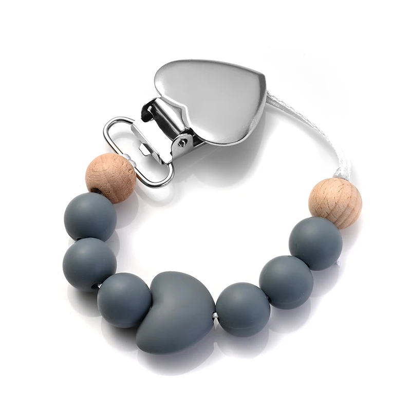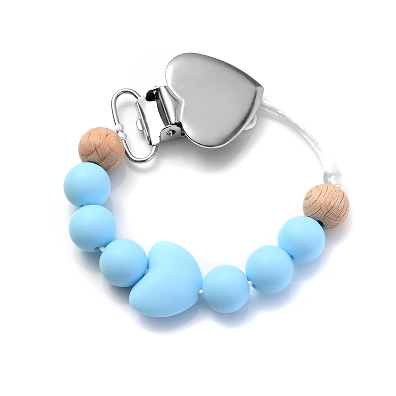 New Baby Heart Metal Nipple Clips Silicone Round Teether Beads Pacifier Chain For Baby Teething Nursing Safe Chew Toys BPA Free