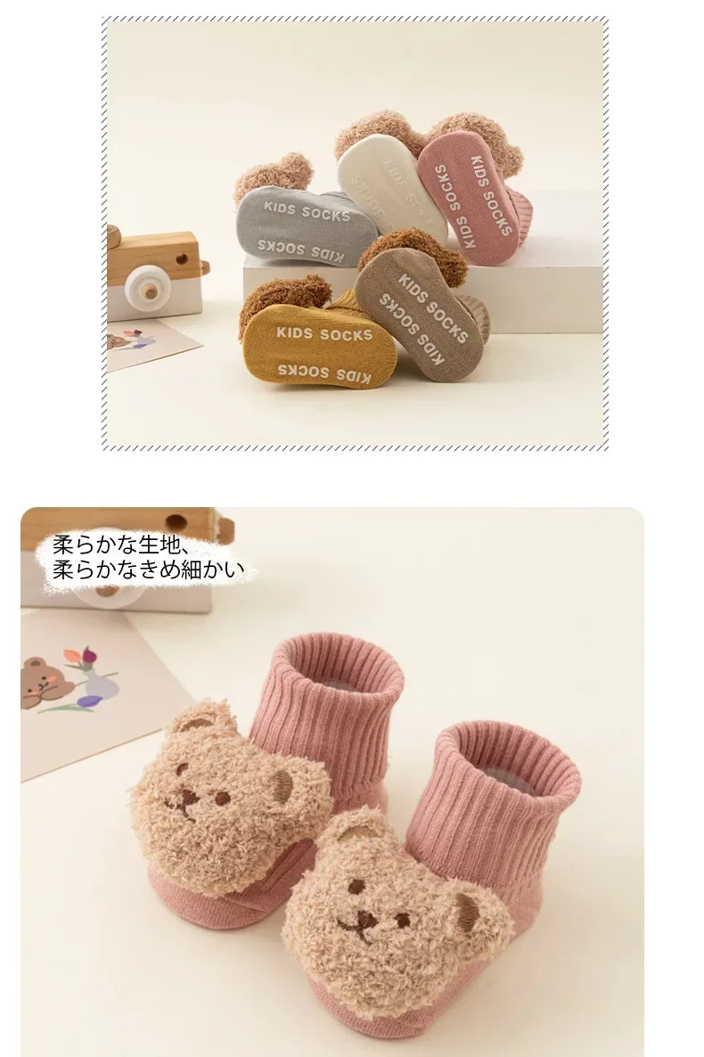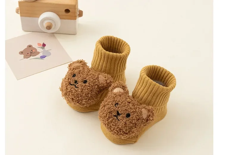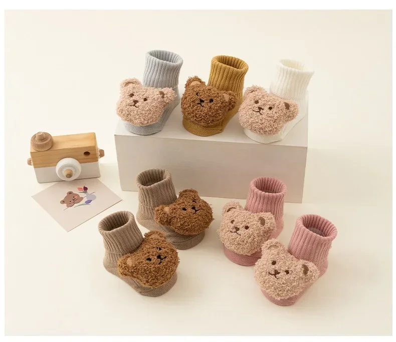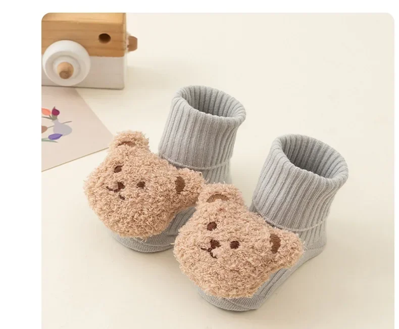 New Baby Winter Autumn Floor Sock Soft Cute Cartoon Bear Doll Toddlers Boys Girls Indoor Shoes Anti-skip 0-3Y Kids Socks