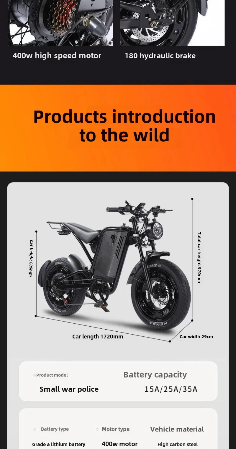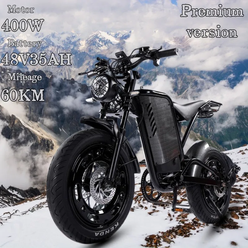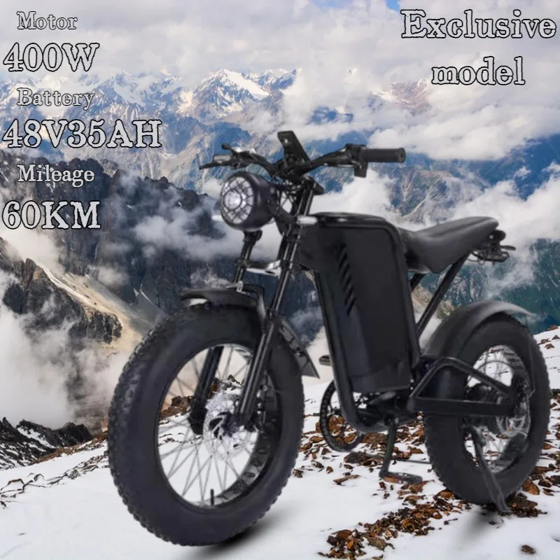 New Black Warrior 400W Motor 48V35AH Electric Motorcycle Adult Road Snow E-Bike 20-Inch Off-Road Mountain Fat Tire Electric Bike