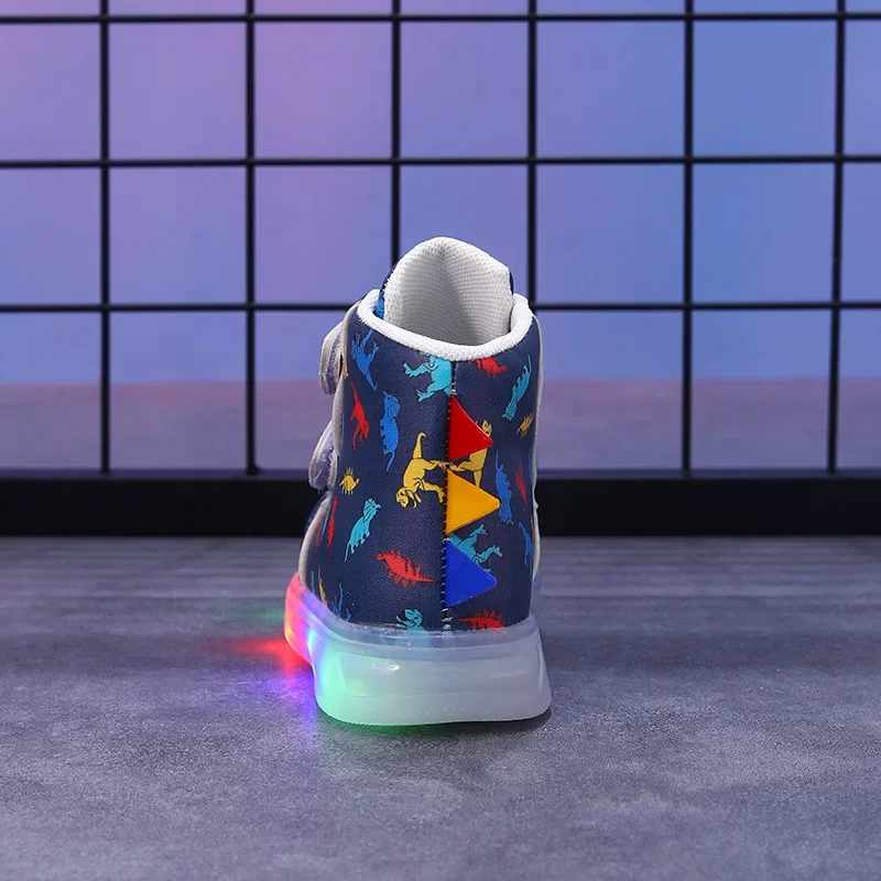 New Children’s Sports Shoes Cartoon Dinosaur Kid’s LED Illuminated Light Shoes 1-6 Year Old Boys’ Sports Leisure Sneakers