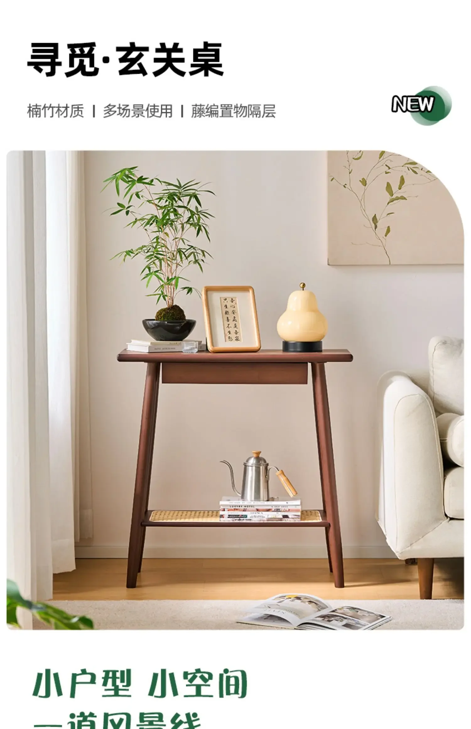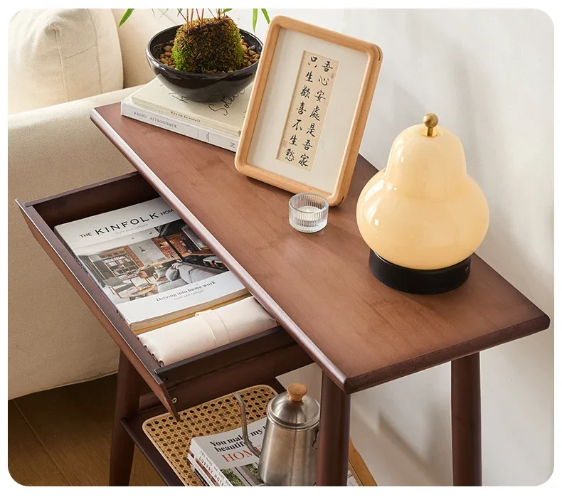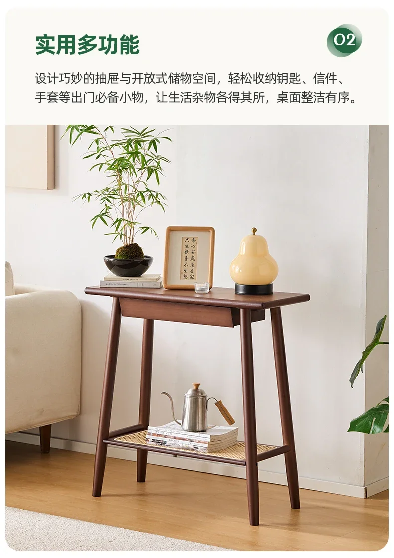 New Chinese Long Sided Table Foyer Against Wall Side Table Natural Bamboo Living Room Desk 2 Layers Structure Home Furniture