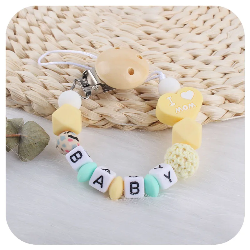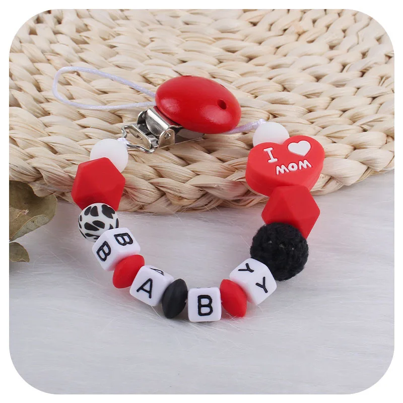 NEW Custom Personalized Name Pacifier Clip Handmade Chain Silicone I Love Dad Mum Holder Soother Baby Teething Toy Chew Gift