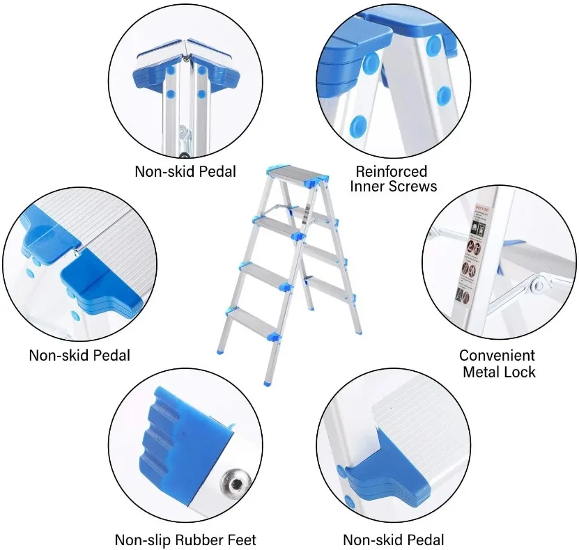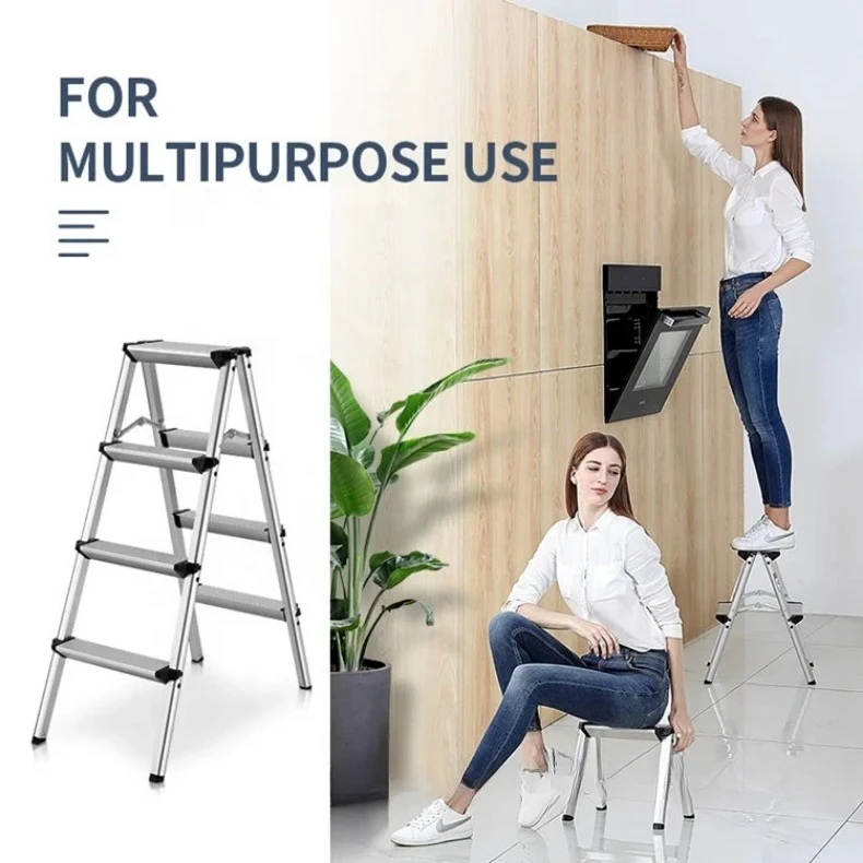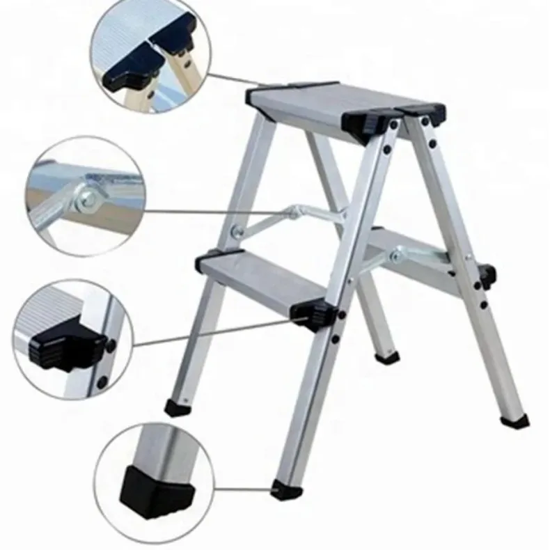 2 Step Ladder Folding Step Ladder Stool Portable Anti-Slip Pedal Platform Stool Aluminum Alloy 330 lbs Load Capacity