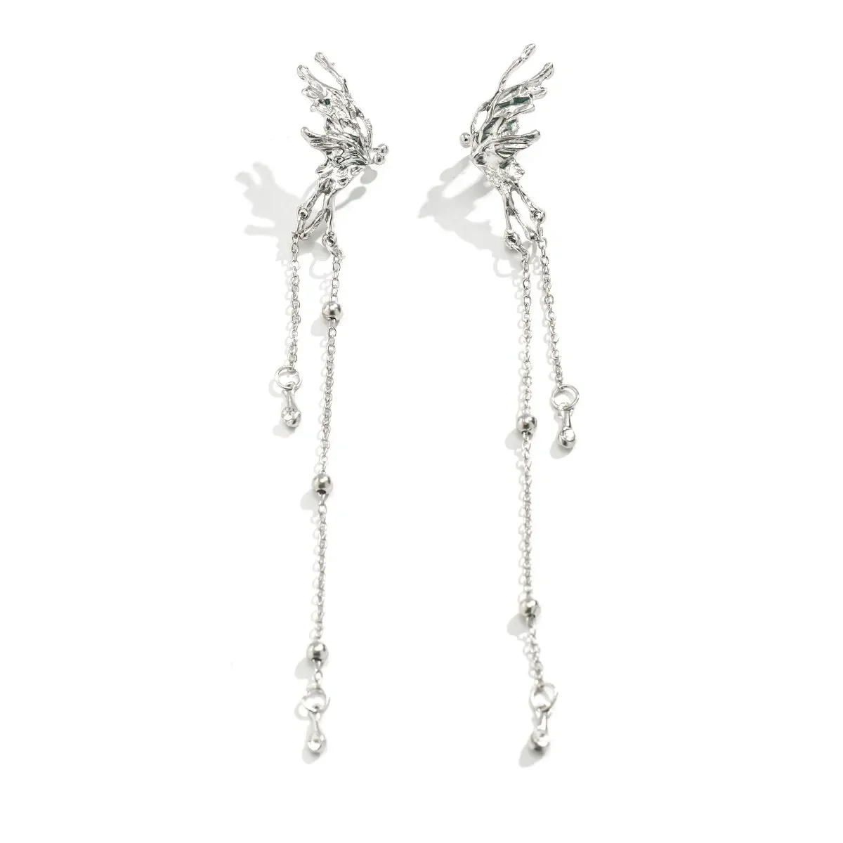 New Elegant Butterfly Long Tassel Clip Earrings for Women Wed Bridal Retro Kpop No Piercing Earbone Ear Cuff Jewelry Gifts 2024