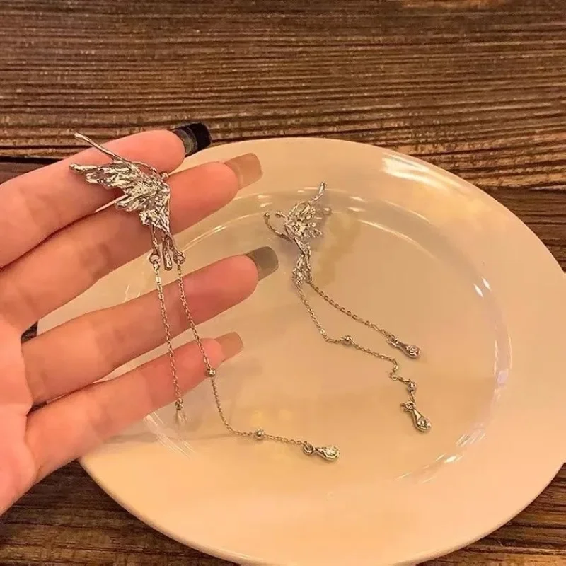 New Elegant Butterfly Long Tassel Clip Earrings for Women Wed Bridal Retro Kpop No Piercing Earbone Ear Cuff Jewelry Gifts