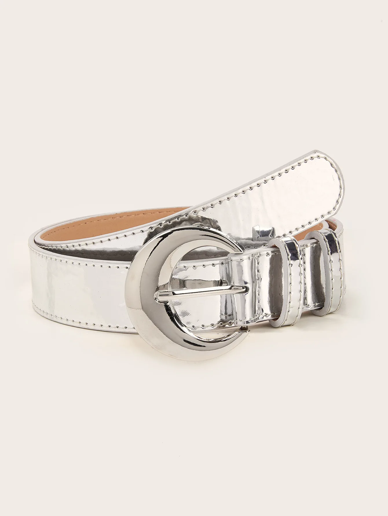 New Fashion Mirror Leather Silver Buckle Belt Versatile Simple Retro Women’s Belt Decoration Jeans with Trendy Style