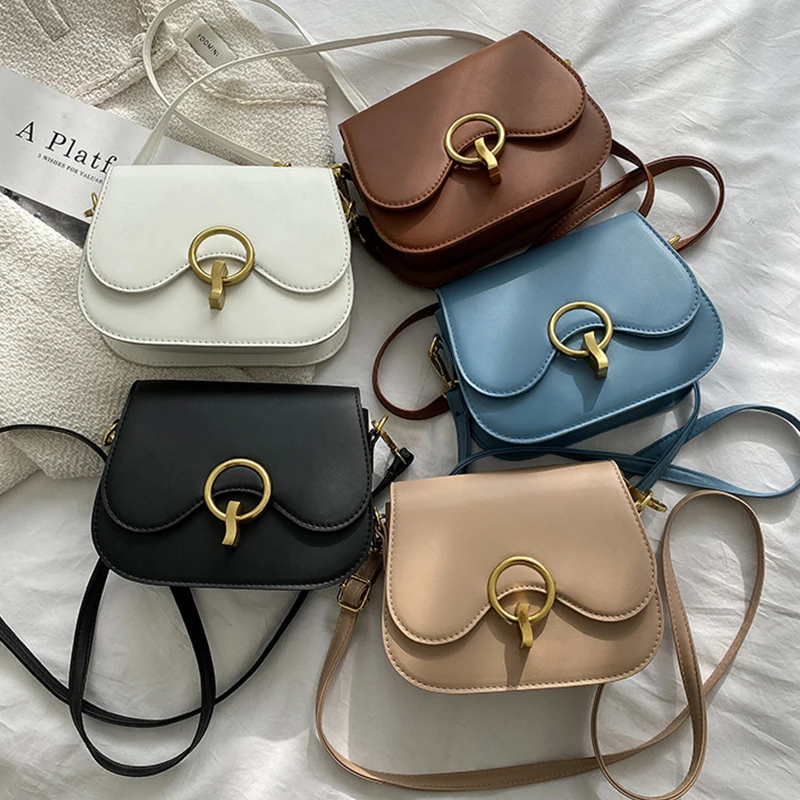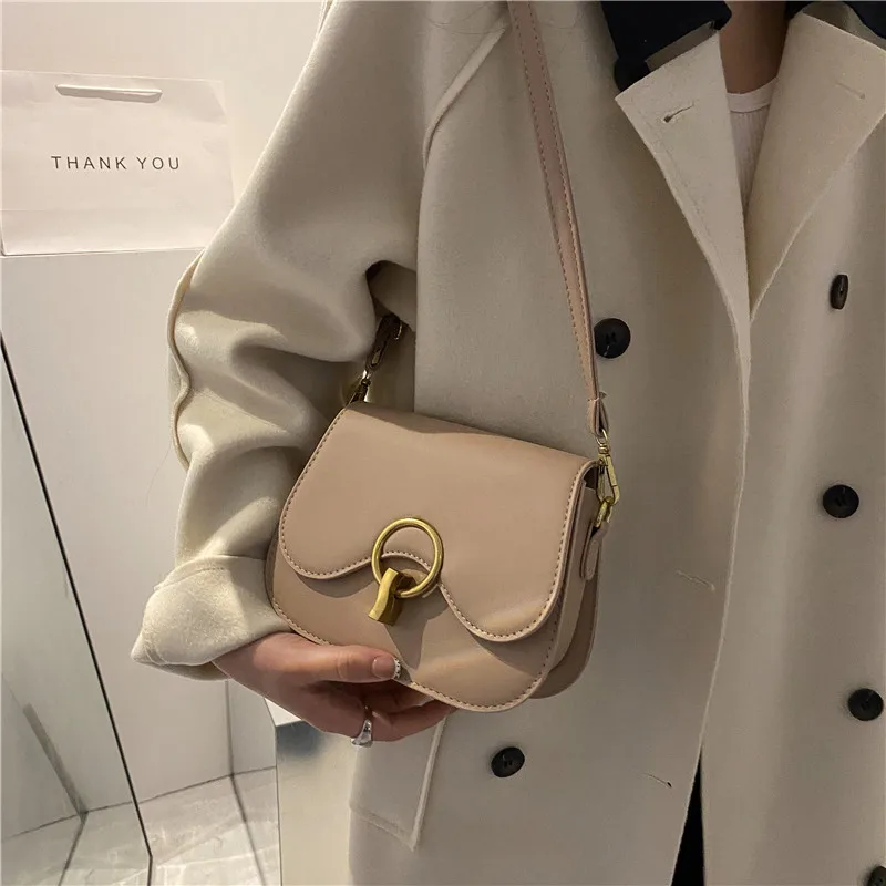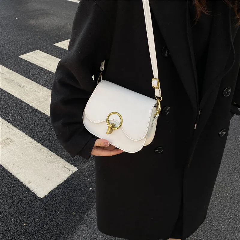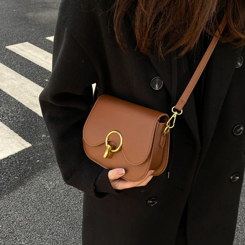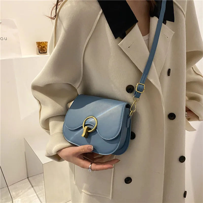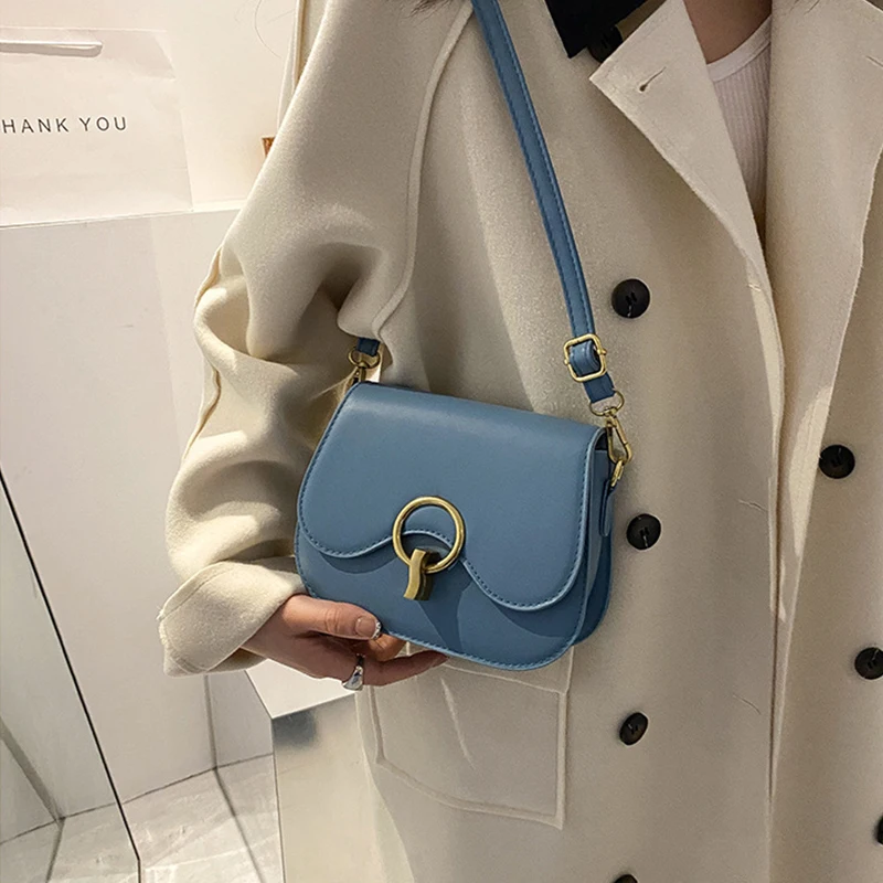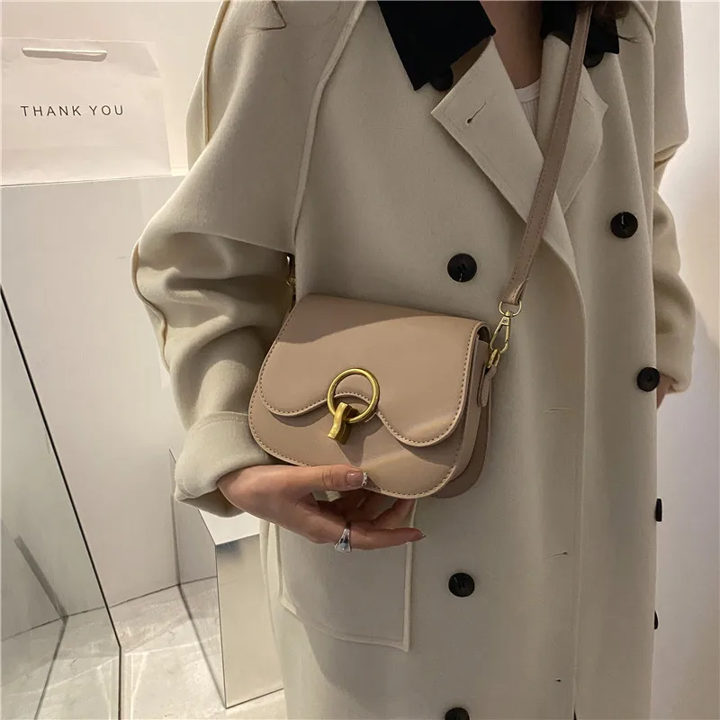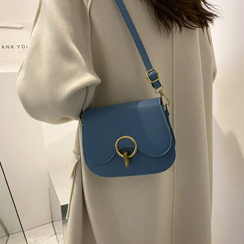 New Flap Crossbody Bags For Women Fashion Lock Design Shoulder Bag Solid Color Pu Leather Ladies Saddle Handbags Cross Body