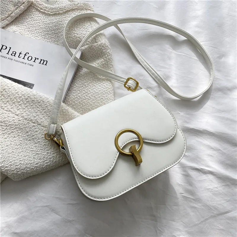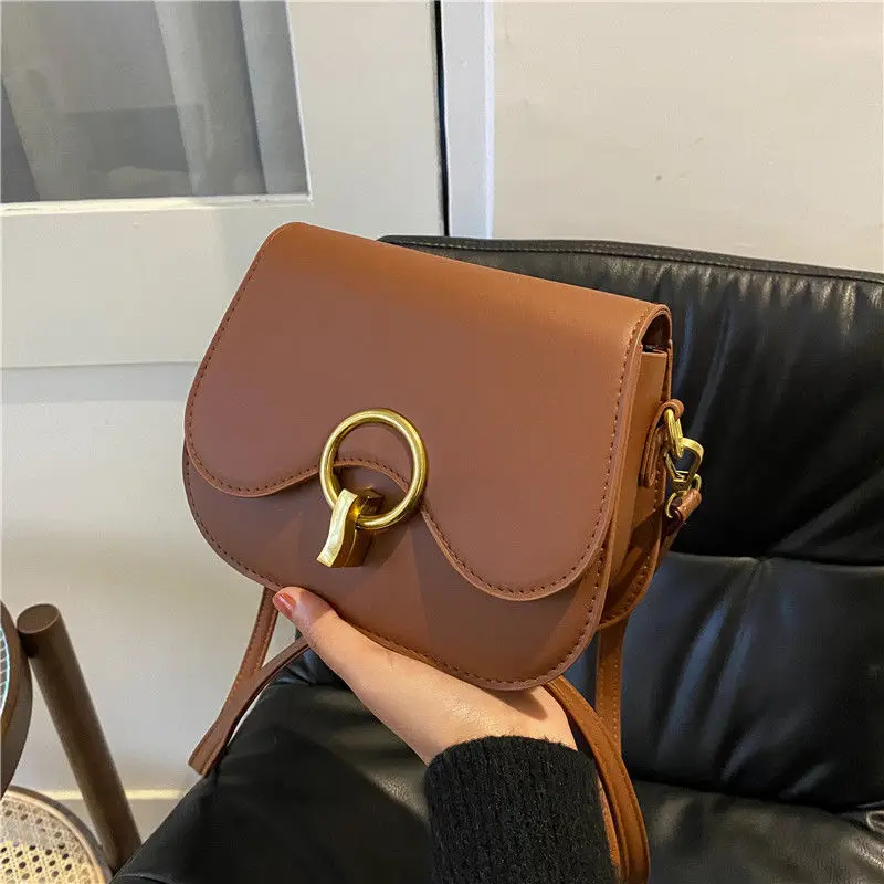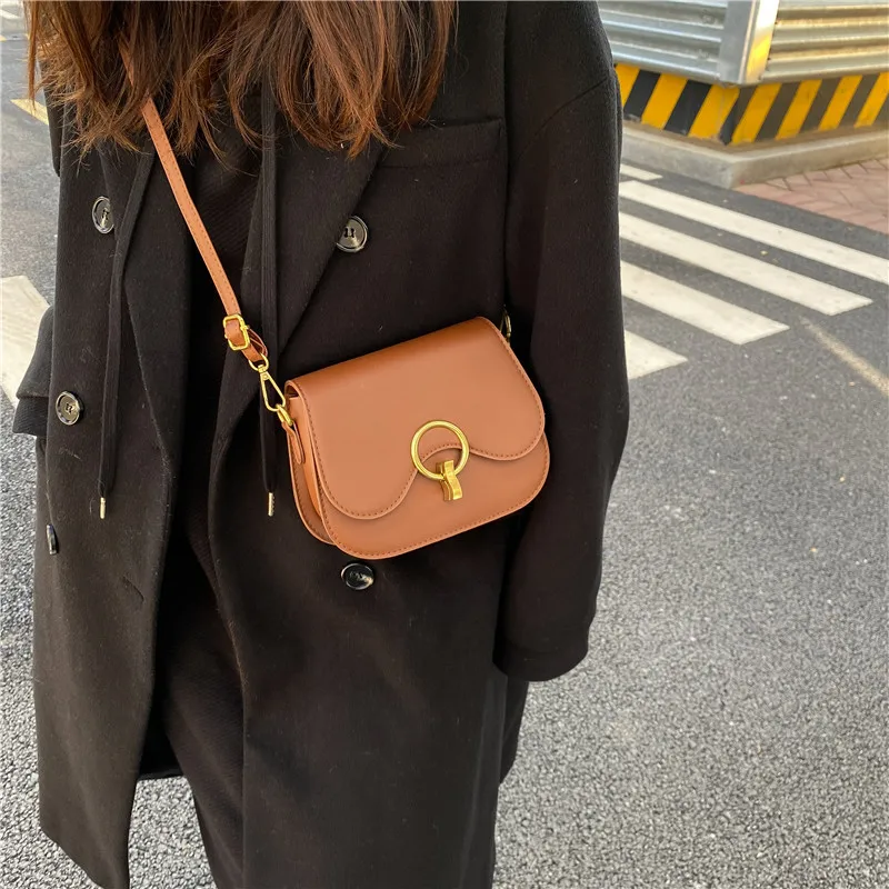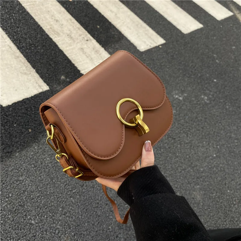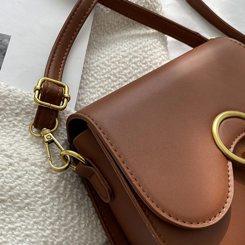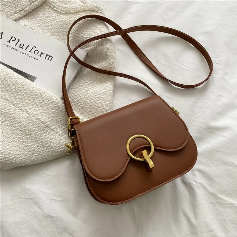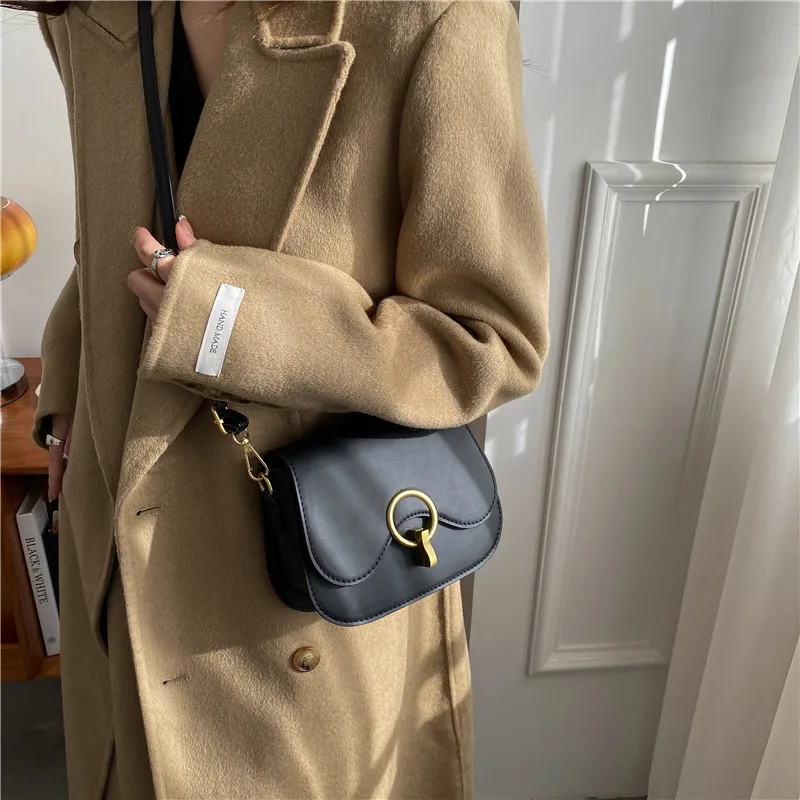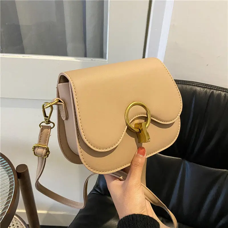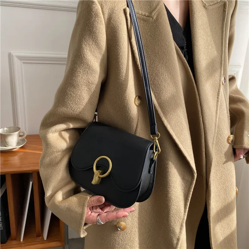 New Flap Crossbody Bags For Women Fashion Lock Design Shoulder Bag Solid Color Pu Leather Ladies Saddle Handbags Cross Body