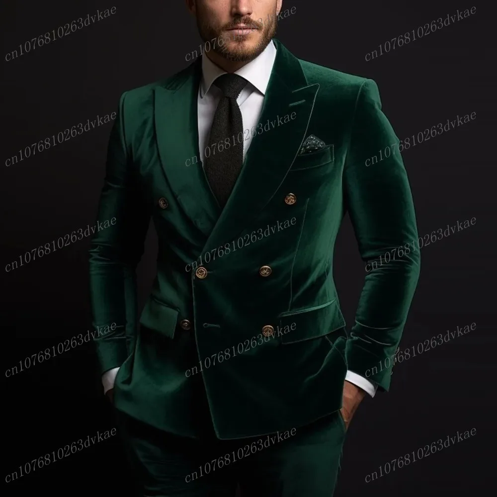 New Green Velvet Men Suit Groom Groomsman Wedding Party Prom Formal Occasion Business Male Tuxedos 2 Piece Set Blazer Pants