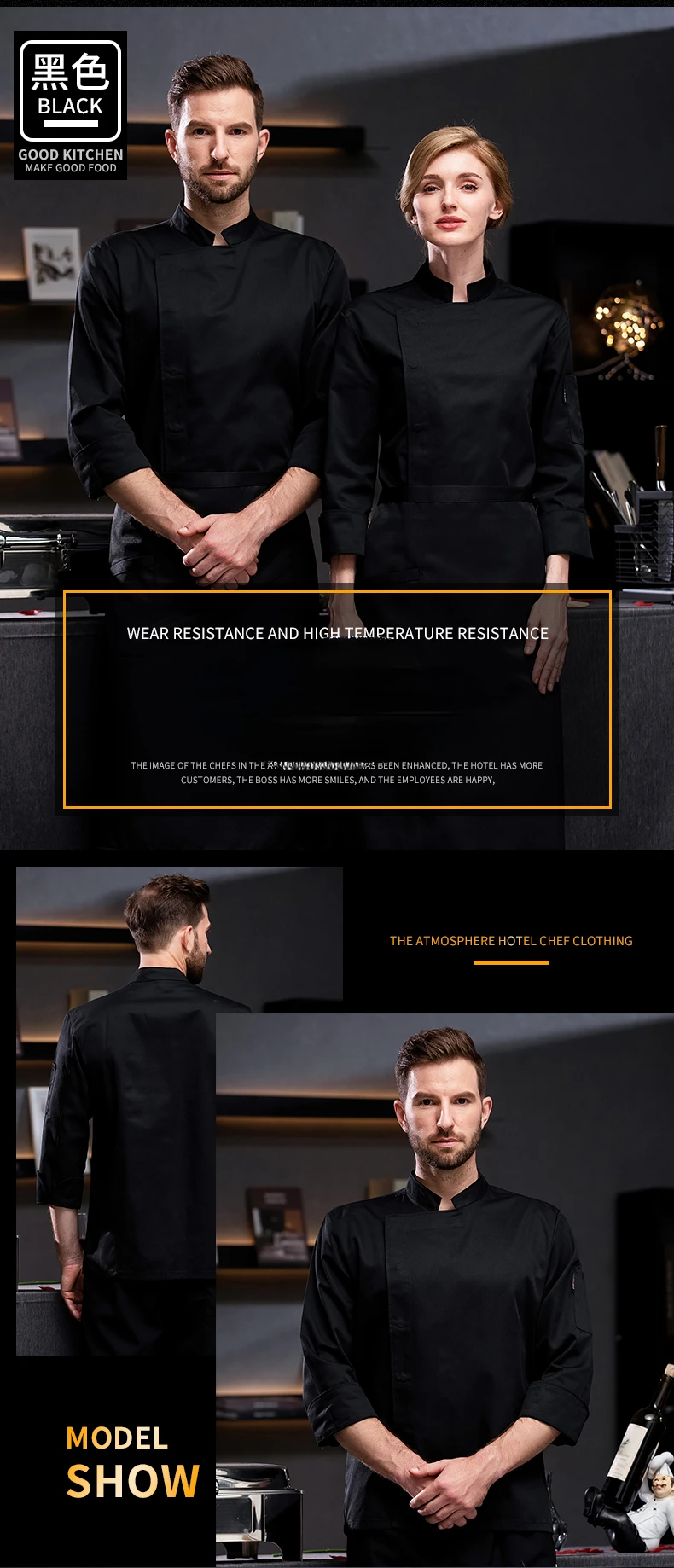 Men Women Kitchen Work Uniform Adult Unisex Chef Jacket Coat Cook Hotel Restaurant Canteen Cake Shop Cafe Shirt Cooking Costume