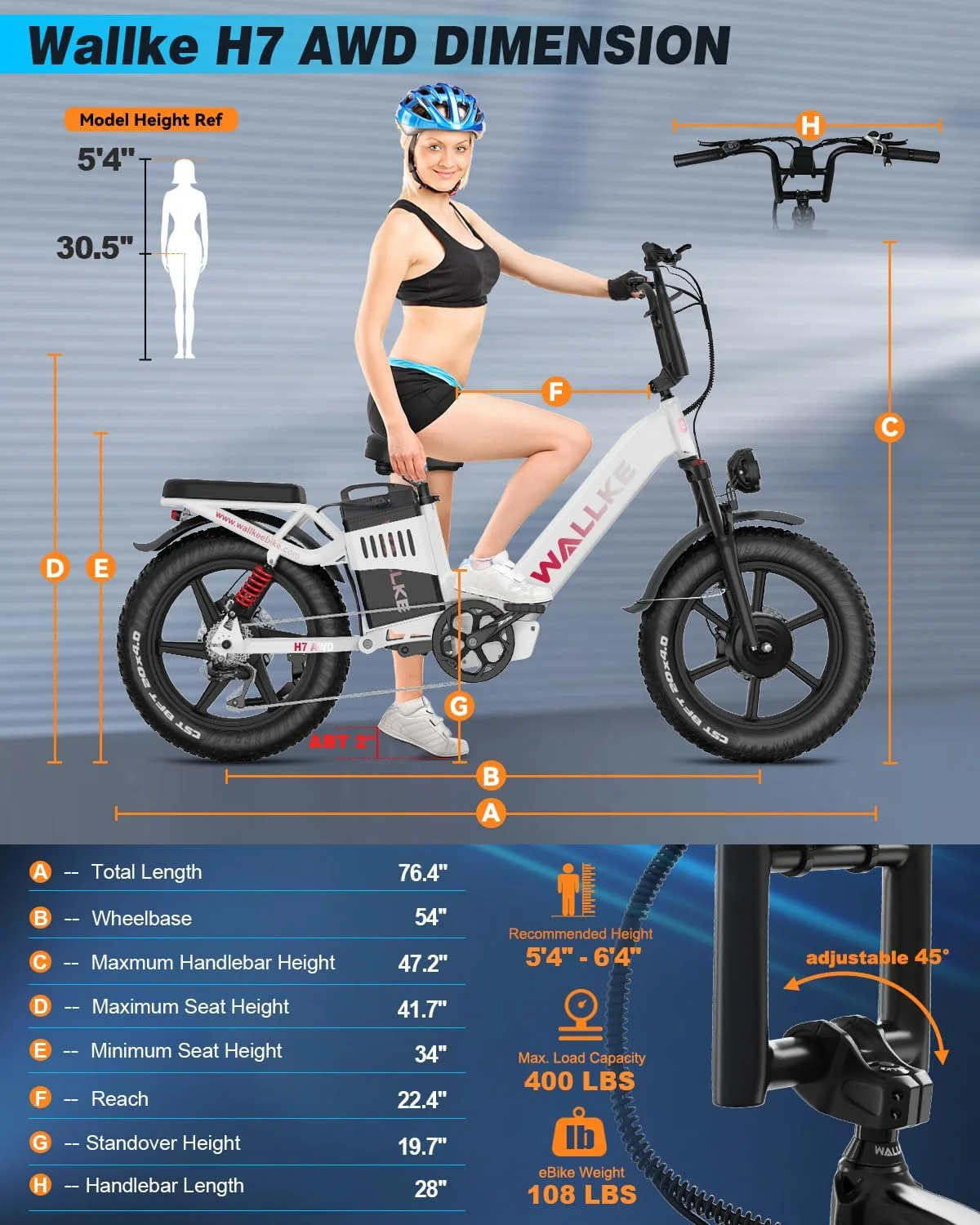 New H7 AWD for Adults 1200W/2000W Single and Double Motor 48V 40/60Ah 20 Inch Fat Tire Urban Electric Bike with APP Control