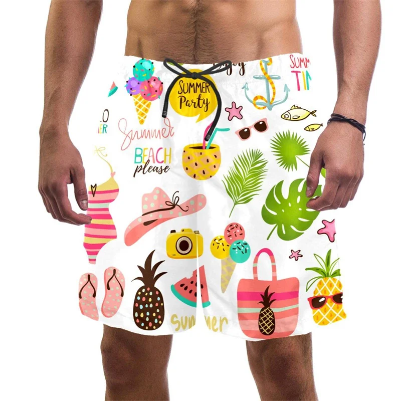 New Harajuku Ice Cream Printing Beach Shorts Tropical Fruits Graphic Board Shorts Men Fashion Funny Swiming Trunks Hawaiian Pant