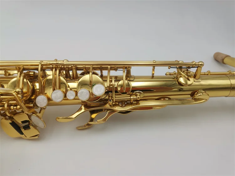 SLADE Soprano Saxophone Bb Brass Body Carved Keys White Shell Keys Saxophone with Reed Glove Back Rubbing Coth