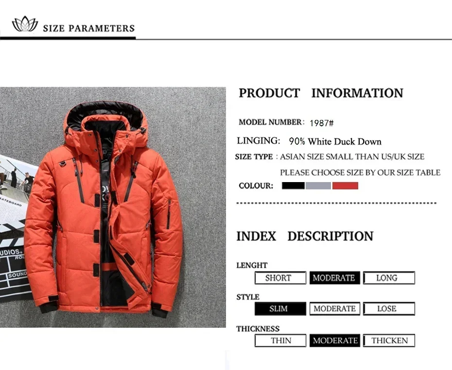 New High Quality White Duck Thick Men’s Down Jacket Snow Parkas Male Warm Hooded Windproof Winter Down Jacket Outerwear