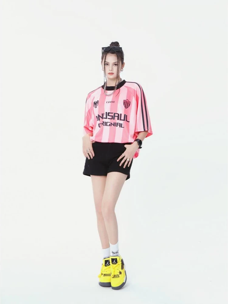 New Hip Hop Basketball Short Sleeve Women’s T-shirt 2024 Fashion Casual O-neck Striped Print Plus Size T-shirt Top Clothing