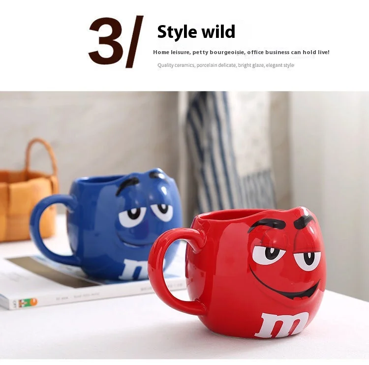 New Hot Chocolate M Beans Ceramics 680ml Mark Water Cup High-Capacity Family Set Table Supplies Funny Facial Expression Cup Gift
