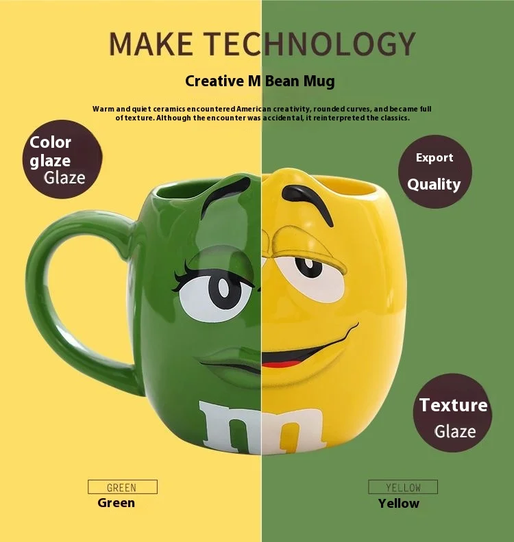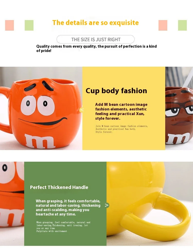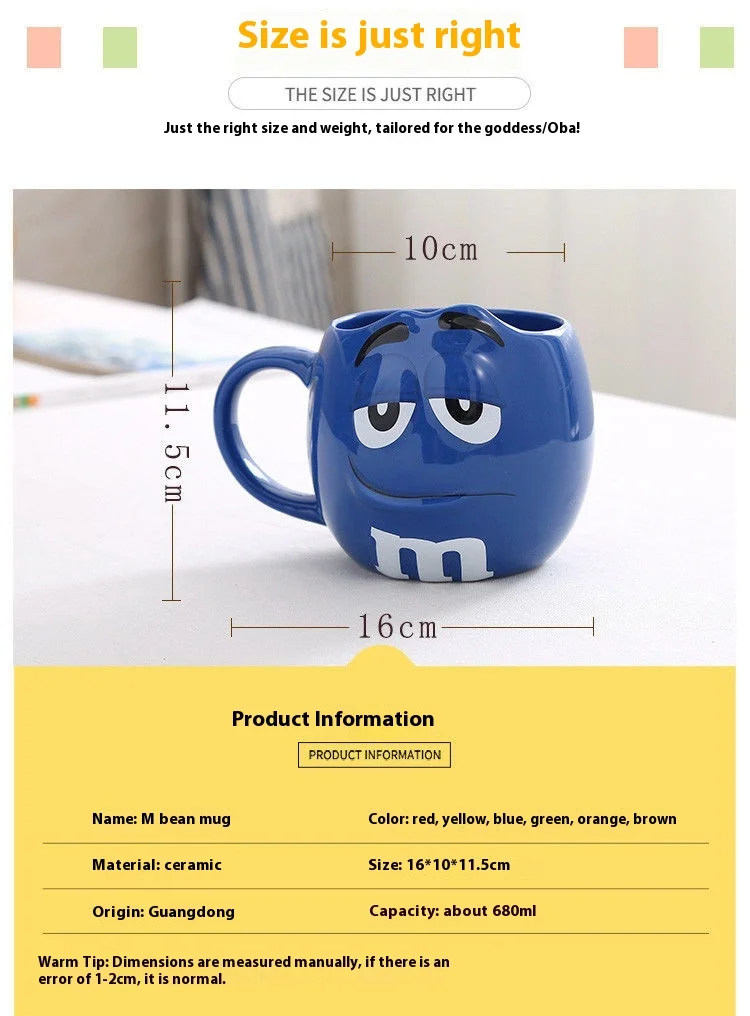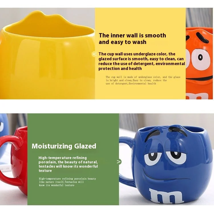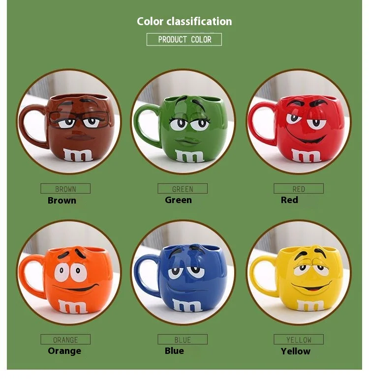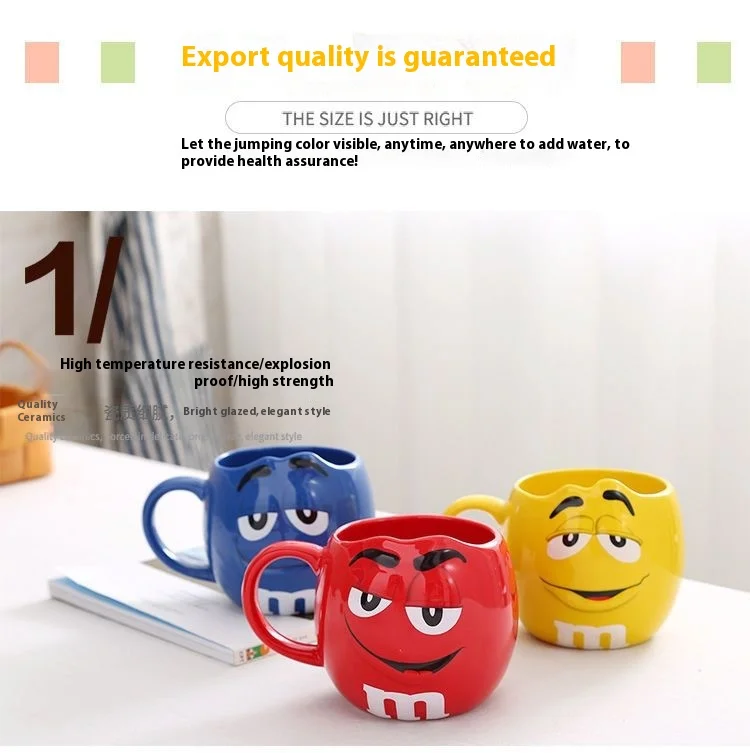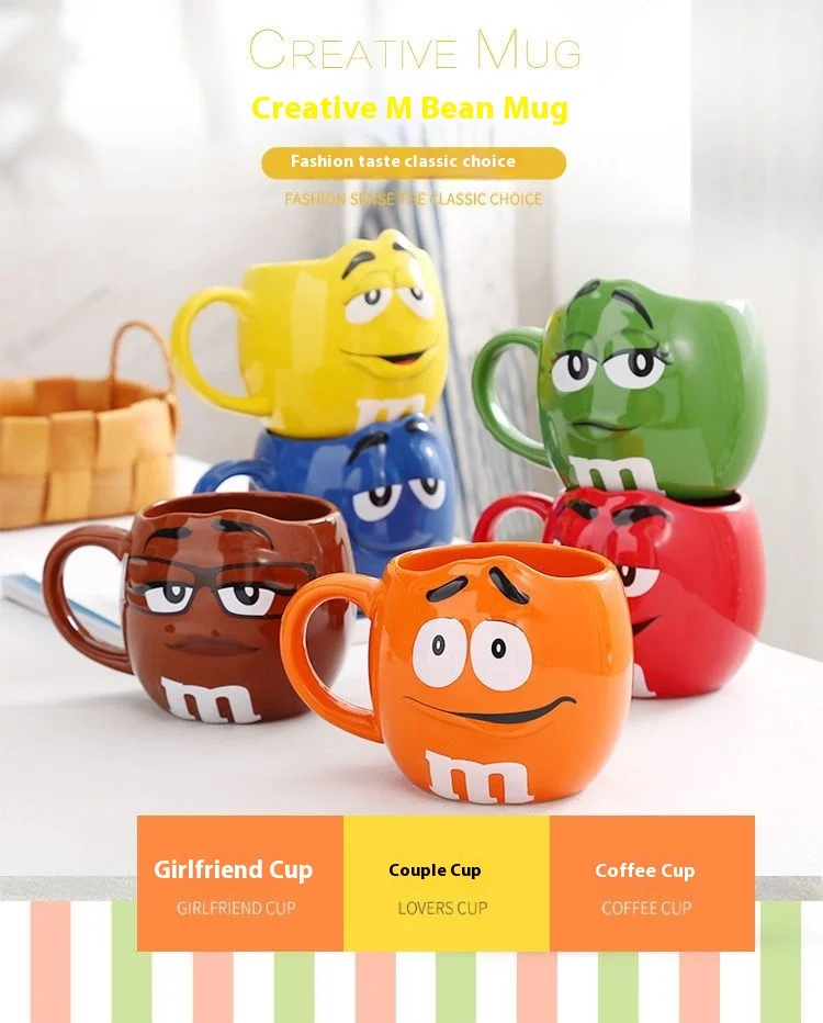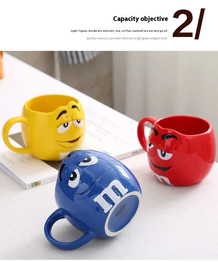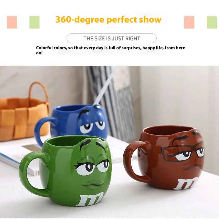 Hot New Chocolate M Beans Ceramics 680ml Mark Water Cup High-Capacity Family Set Table Supplies Funny Facial Expression Cup Gift
