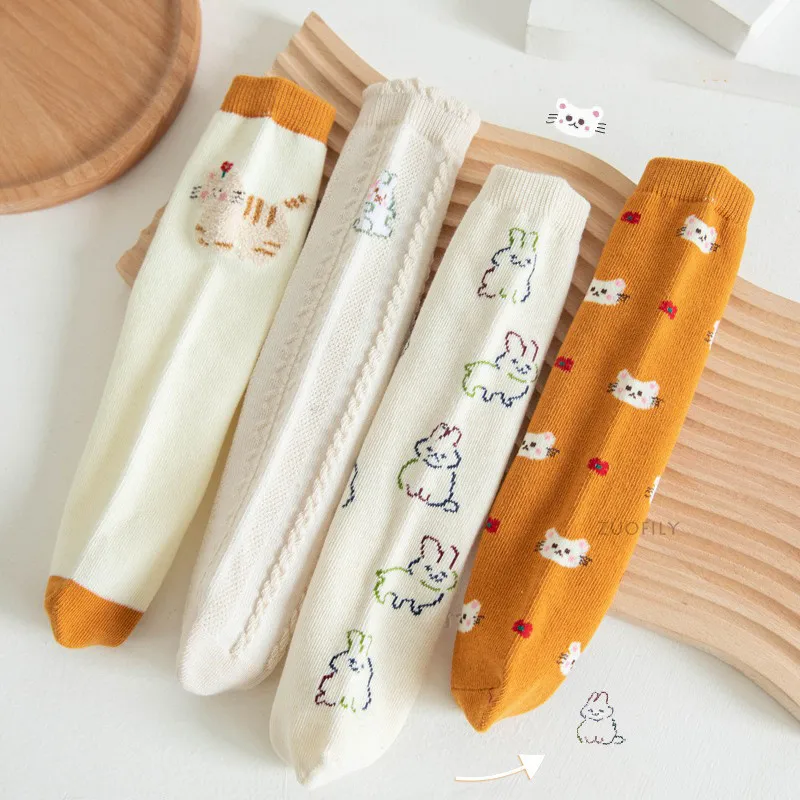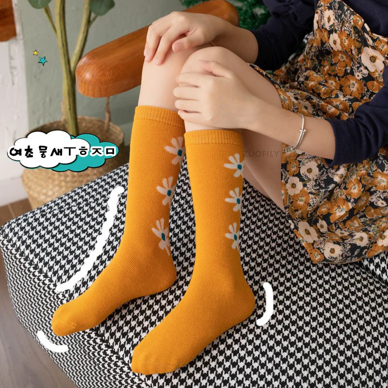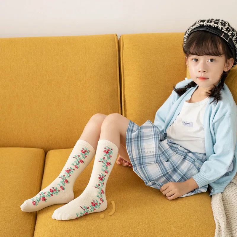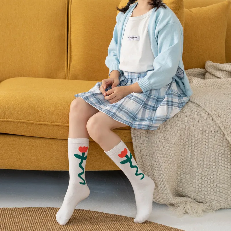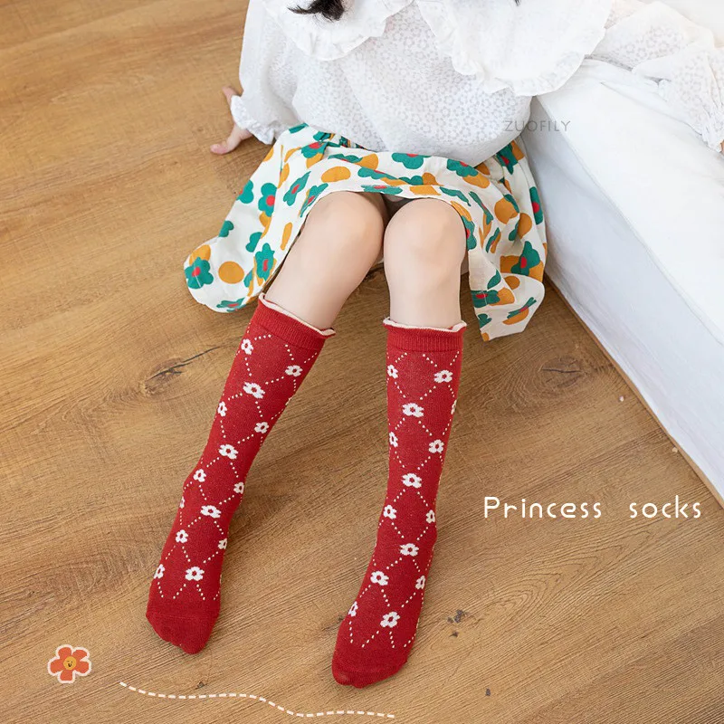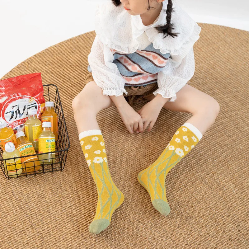 New Infant Baby Girls Boys Soft Cotton Children Socks Kids Knee High Cute Printing Long Sock Candy Color Toddler Newborn Socken