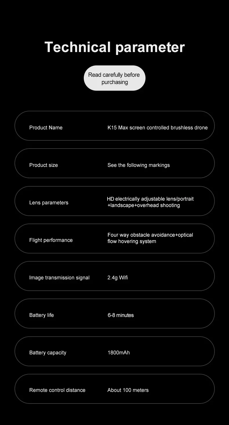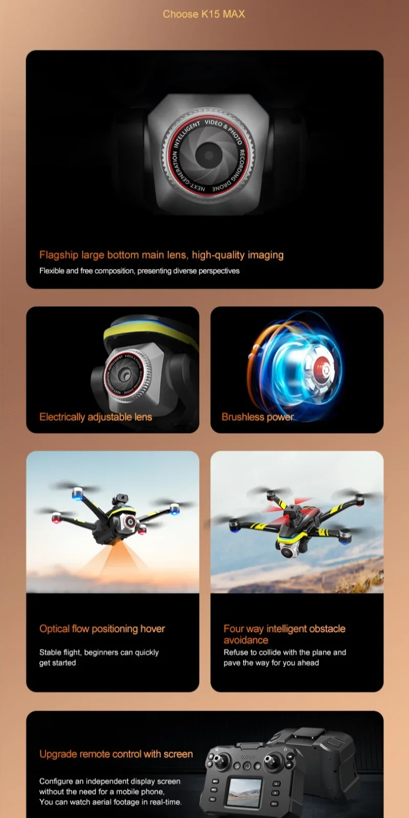 New K15MAX New Hot Selling Drone Four Sides Obstacle Avoidance Electric Lens Equipped with 2 Cameras with Brushless Motor