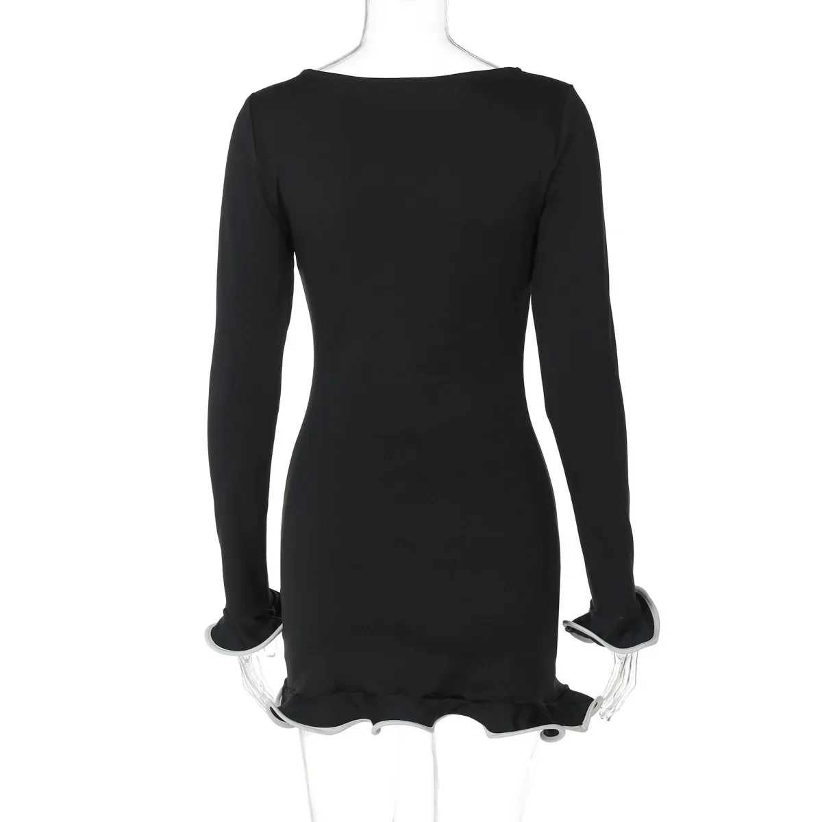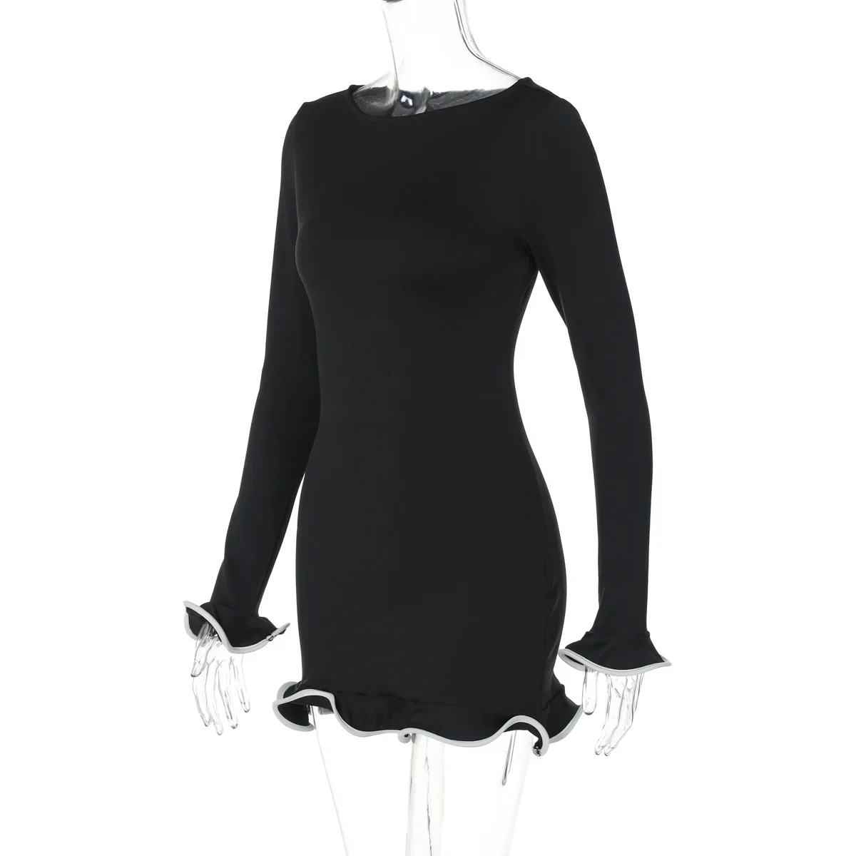 New Knitted Ruffle High Waist Mini Dress Women’s Sexy Slim Long Sleeve Short Skirt Bodycon Dress Fall Luxury Crochet Clothes